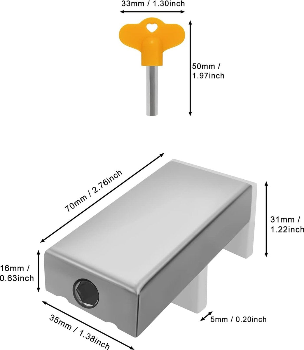 - 【Veel gebruikt】 Schuifraamsloten kunnen gemakkelijk worden toegepast op de meeste omgevingen, zoals terrasdeuren, glazen schuifdeuren, schuiframen van hotels, woningen, ziekenhuizen, scholen en kantoren om kinderen een veilige omgeving te bieden
