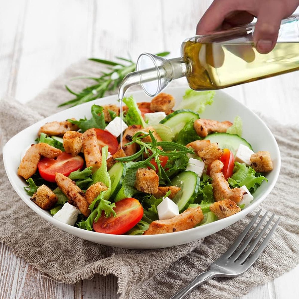 Fijne afwerking: deze 2 stuks olijfolieflessen zijn gemaakt van hoogwaardig glas met fijn vakmanschap van het vuur op hoge temperatuur, dat super transparant biedt om het er als een kunstwerk uit te laten zien, niet giftig, geurloos en BPA-vrij voor veilig koken Druppelvrij, geen lekkage: met een unieke hellende schenktuit voorkomen de olieflessen effectief lekkage, druppels en overlopen en voorkomen stof om de kwaliteit van de olie te behouden, een perfecte en nauwkeurige stroomcontrole om de heerlijke levensmiddelen gemakkelijker te maken. Grote inhoud: afmetingen 26 x 5,8 cm, 18 x 5,1 cm, 15 x 5,1 cm, capaciteit van 500 ml, 240 ml, 125 ml, met de brede opening maken de oliefles een eenvoudiger en comfortabelere olievulling zonder gereedschap mogelijk. Helder en minimalistisch, deze oliefles geven je keuken meer elegantie. Breed toepassingsgebied: een olijfoliedispenser voldoet aan je verschillende keukenbehoeften, hij helpt niet alleen om olijfolie op te bergen, maar ook ideaal voor wijn, cocktail, melk, dranken, sap en andere vloeistoffen, deze oliefles wordt veel gebruikt in hotel, bar, huis, restaurant en meer.