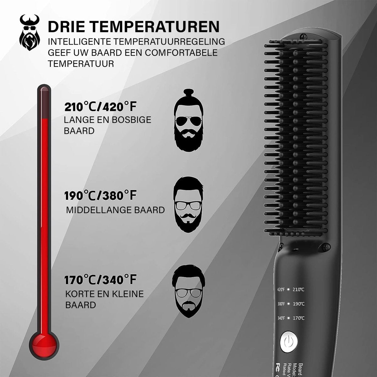 - Anti-Verbranding Kam: Geen zorgen meer over onbedoelde verbrandingen of ongemak tijdens het stylen. De baardborstel is voorzien van een speciale anti-verbranding kam die je huid beschermt en een soepele stylingervaring biedt.