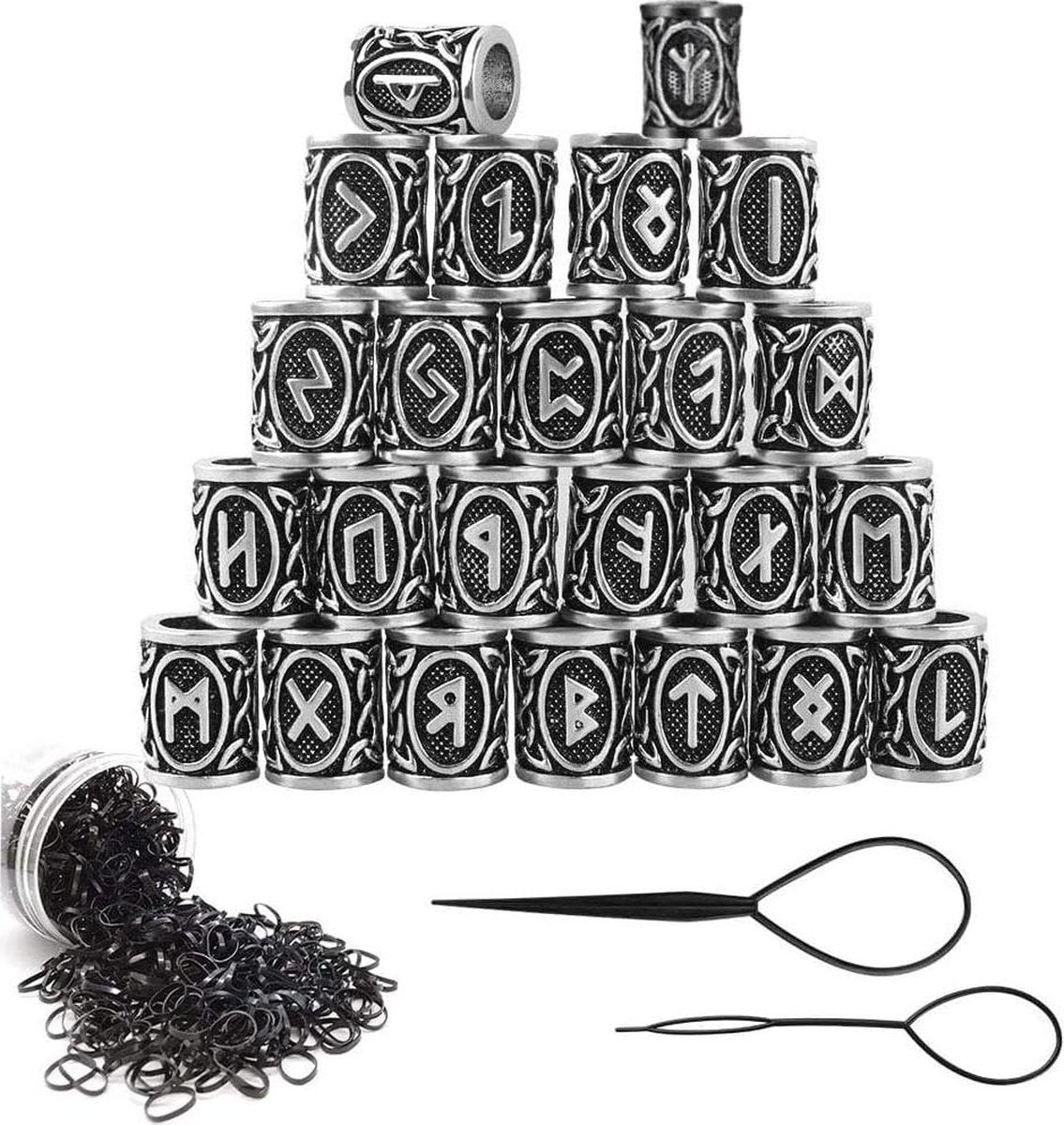 De Viking rune kralen set is de perfecte manier om je haar en baard een unieke en trendy uitstraling te geven. Met 24 stuks rune kralen, 2 stuks haargereedschap en ongeveer 500 elastische haarbanden, heb je alles wat je nodig hebt om je kapsel te personaliseren.
