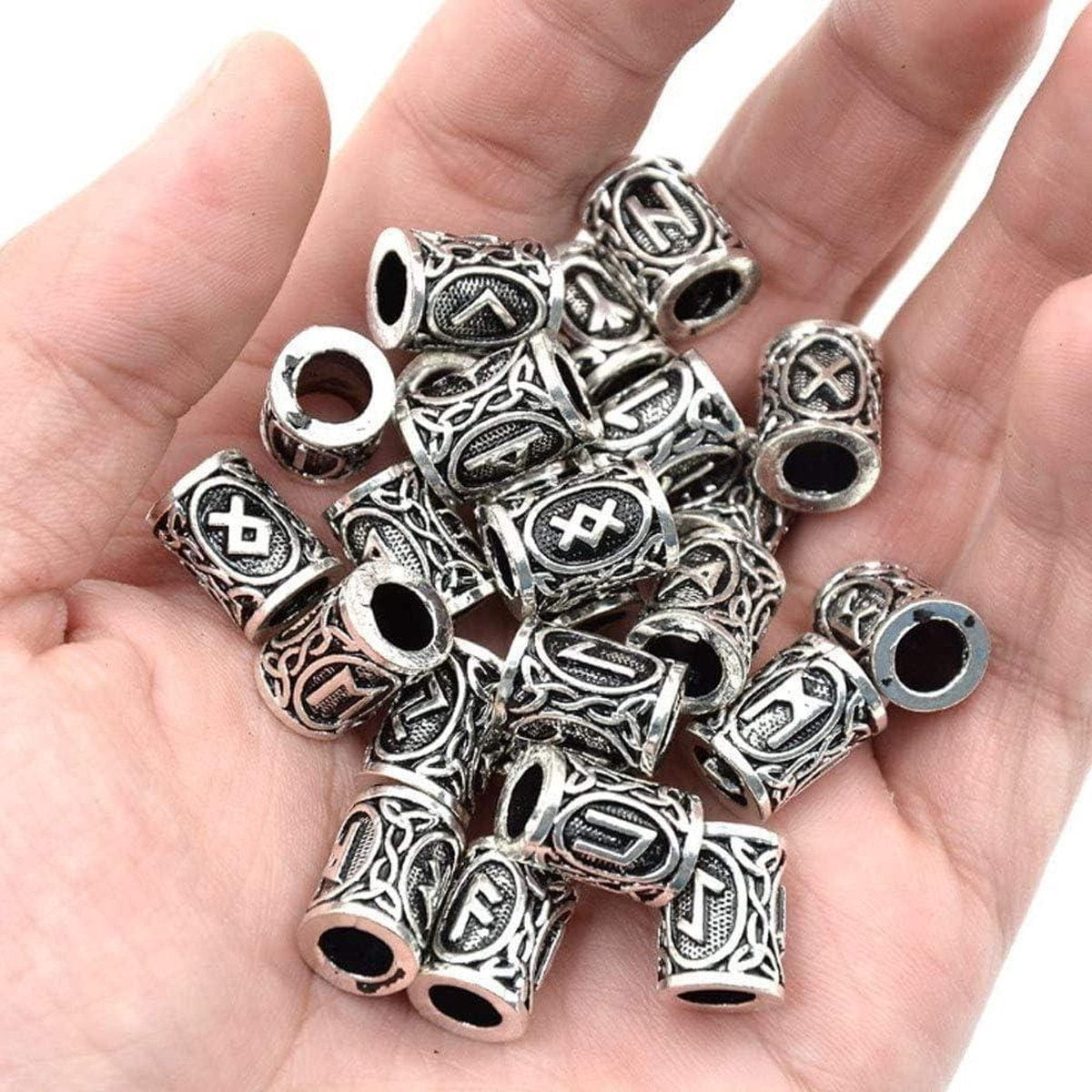 Baardsieraad heren - 24 stuks Viking Runen baardkraal haarbuis dreadlocks kralen zilverzwart - Noorse baarden elastiekjes voor haarvlechten haar ringen vlechten