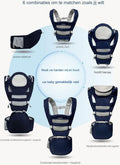 Baby draagzak, 6 in 1 baby draagzak, baby draagzak met heupzitting, lendensteun, ergonomische, verstelbare en afneembare baby draagzak voor winkelen, wandelen