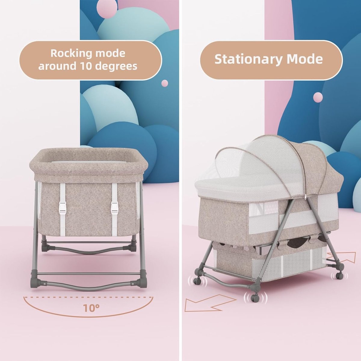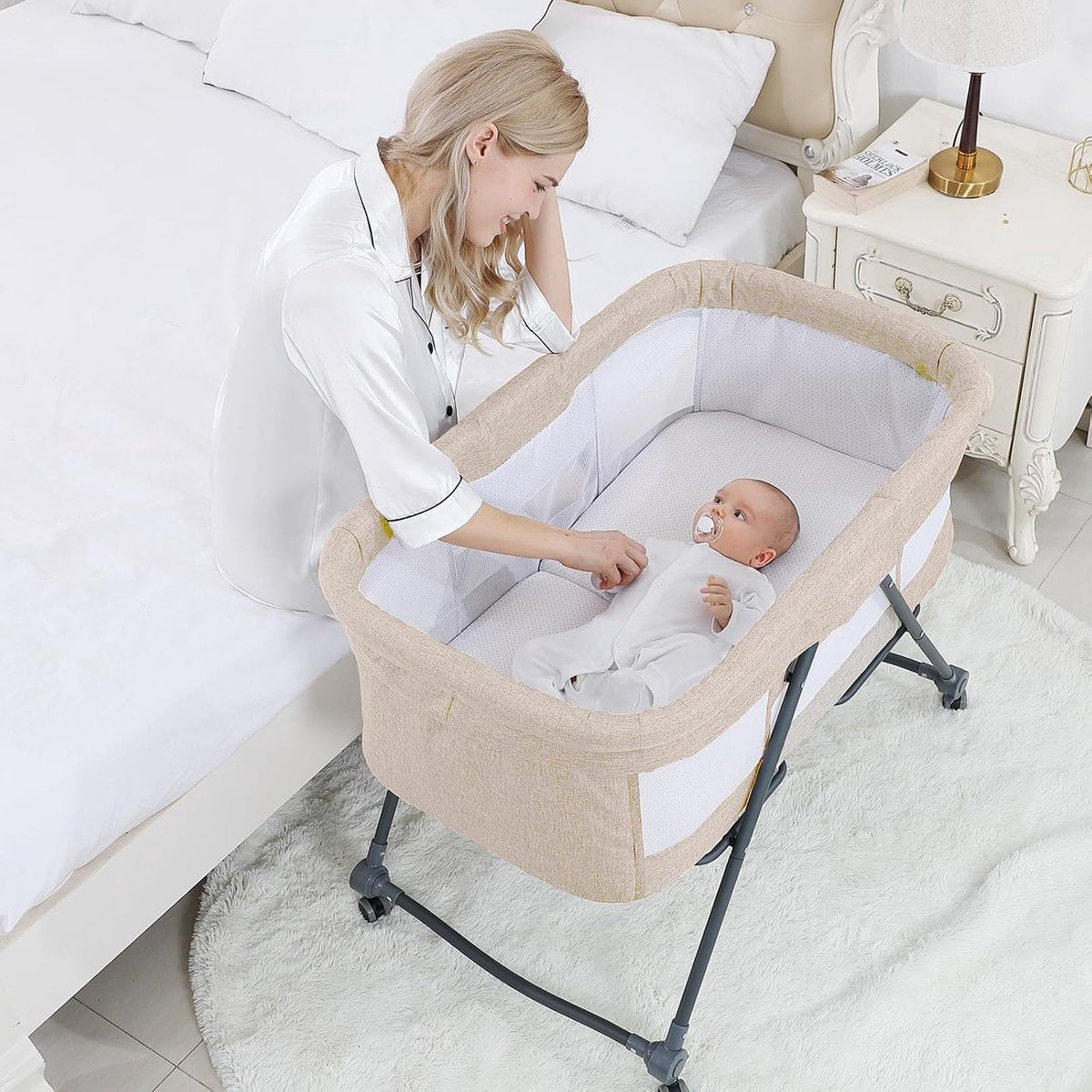 Babybed met zacht matras, reisbed incl. opslag, wiegfunctie, opvouwbaar, slip en transporttas, vanaf de geboorte tot 20 kg, wieg, complete set voor baby's van 0-6 maanden, kaki