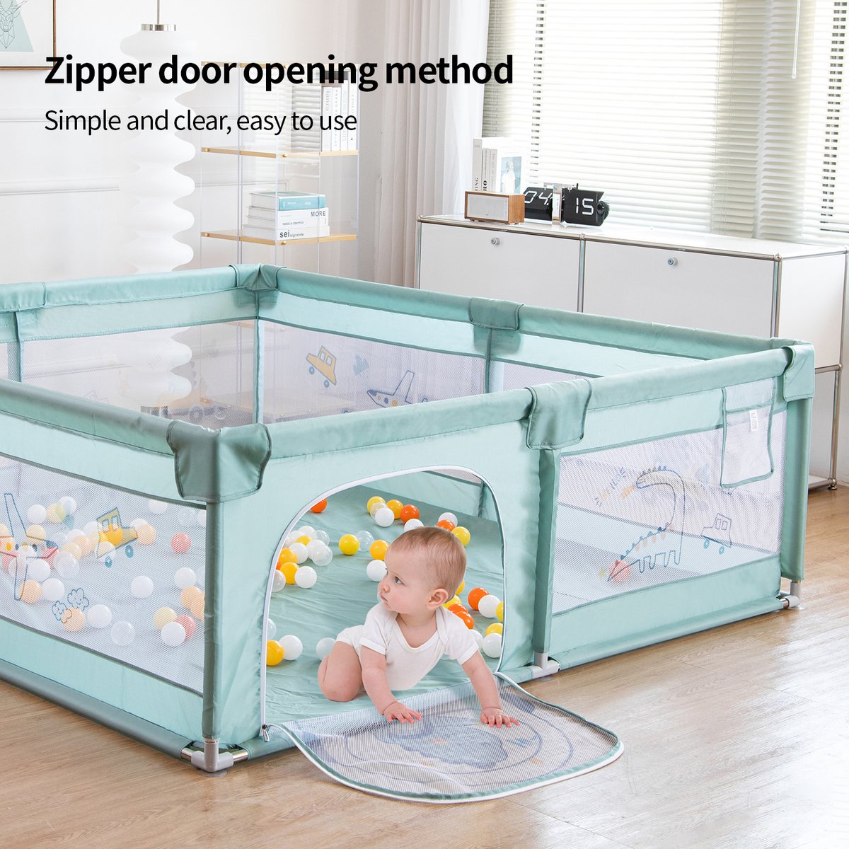 Babybox - Afsluitrooster met ademend Net - Kinder Activiteitencentrum binnen - Kruipbox voor Baby - met Ritssluiting - 180 x 200 x 65cm - Groen