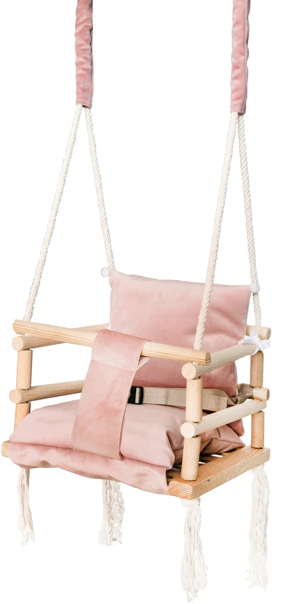Babyschommel Babyzitje - Stof Hout - Babyschommel Binnen - kinderschommel - Schommel Baby Zitje - Schommelzitjes - Schommelstoel - Roze