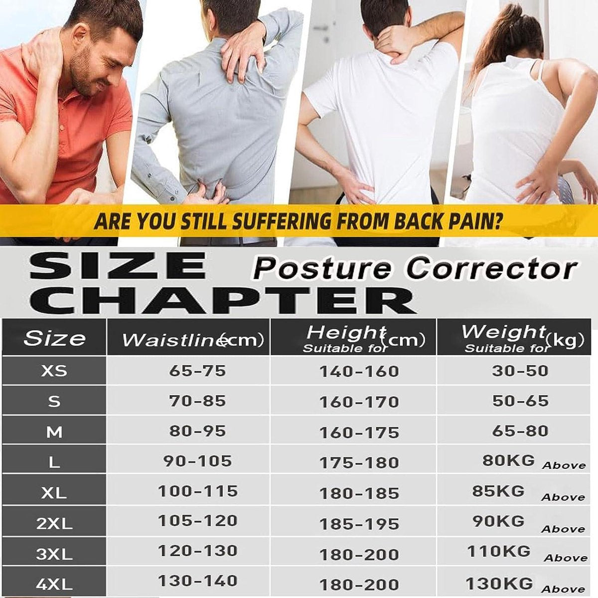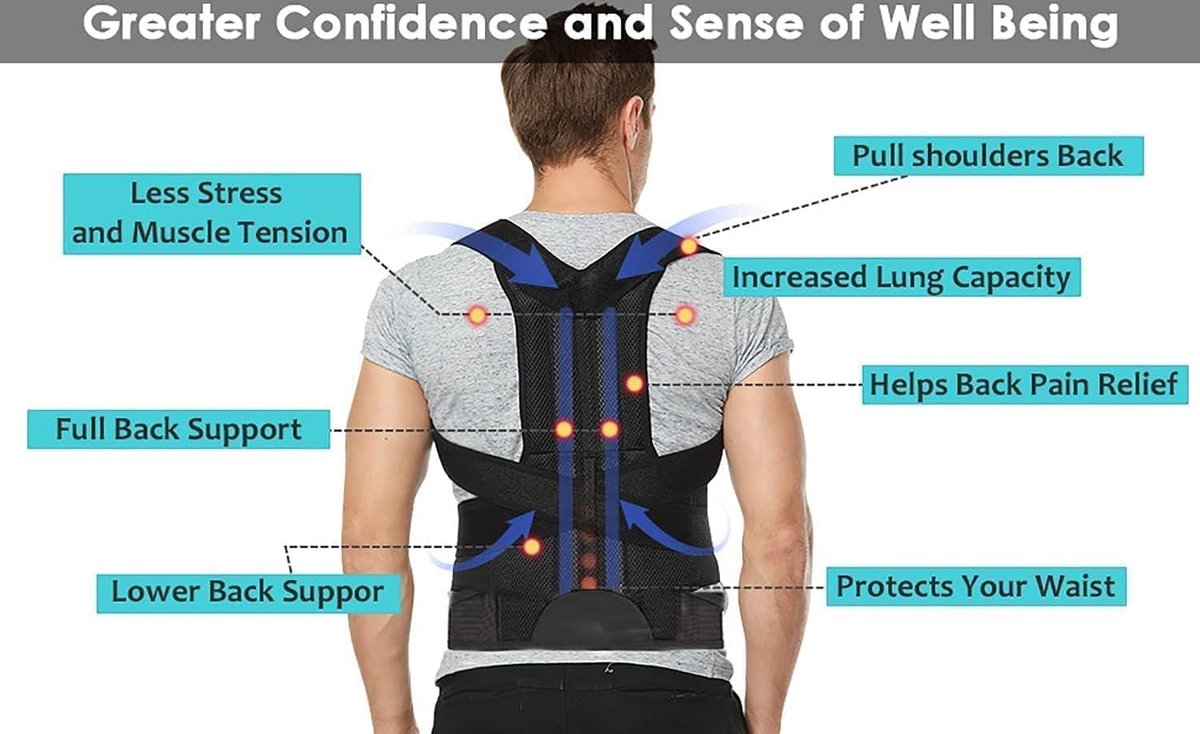 Improve your posture and relieve back pain with our Posture Trainer. Poor posture can lead to various pains and an unflattering image, but our back support can help correct it effectively. Made of soft, breathable material with adjustable straps, this posture corrector is comfortable to wear and can be easily hidden under clothing.The benefits of our Posture Trainer include: - Full back support to relieve back pain - Helps align bones and joints for proper muscle use - Trains your posture and develops muscle memory - Relieves pressure on the back, stomach, and neck - Suitable for various health conditions like back pain, osteoporosis, and poor postureThis posture corrector is suitable for both men and women and is designed to improve your posture without causing discomfort. Stay comfortable and confident with our premium back support. Product Specifications: - Material: Soft, breathable fabric - Gender: Men and Women - Size: Adjustable straps - Color: BlackInvest in your health and confidence with our Posture Trainer.