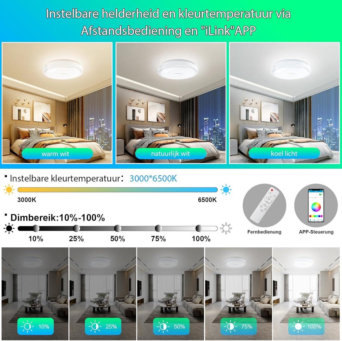 Badkamer Plafondlamp - Badkamerlamp Plafond 30W LED Bluetooth Speaker Kleurverandering APP Bediening Slaapkamer Keuken Kinderkamer Woonkamer Badkamer IP54