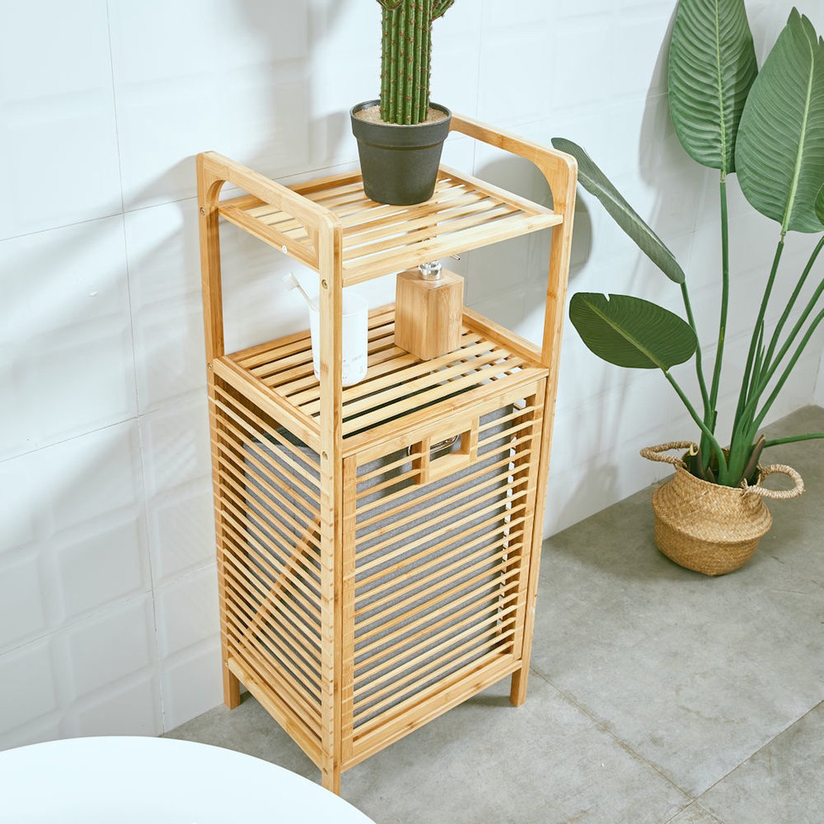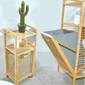 Badkamerrek met Wasmand - Bamboe hout - Badkamerkast - Badkamermeubel - 2 etages - waszak - Opvouwbare wasmand