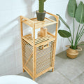 • Bamboe houten Badkamerrek met Wasmand Badkamerkast met 2 etages legplanken Met ingebouwde uitklapbare wasmand 40 x 30 x 95 Cm
