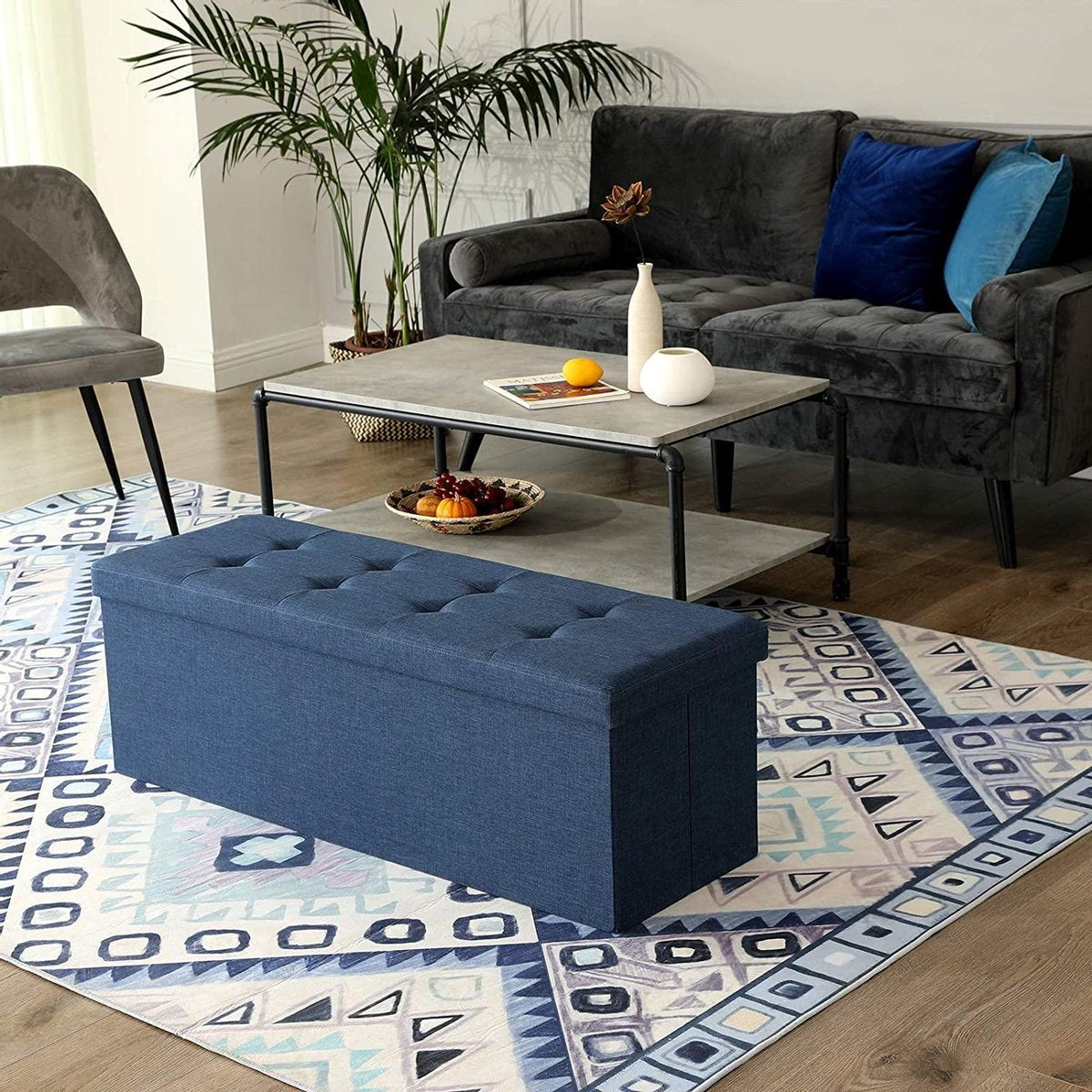 bank met opbergruimte, kist met deksel, opvouwbaar zitmeubel, bed, slaapkamer, gang, ruimtebesparend, 120L inhoud, stal tot 300 kg, gewatteerd, marineblauw LSF77IN