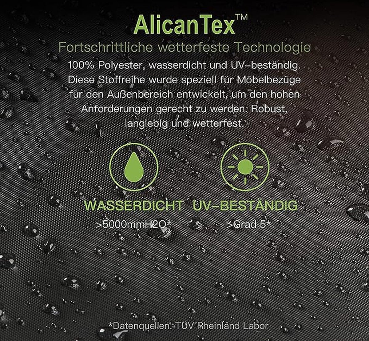 - Technisch weefsel: AlicanTex, geslaagd voor de waterdichte, UV-bestendigheids- en scheursterkteproeven van TÜV Rheinland