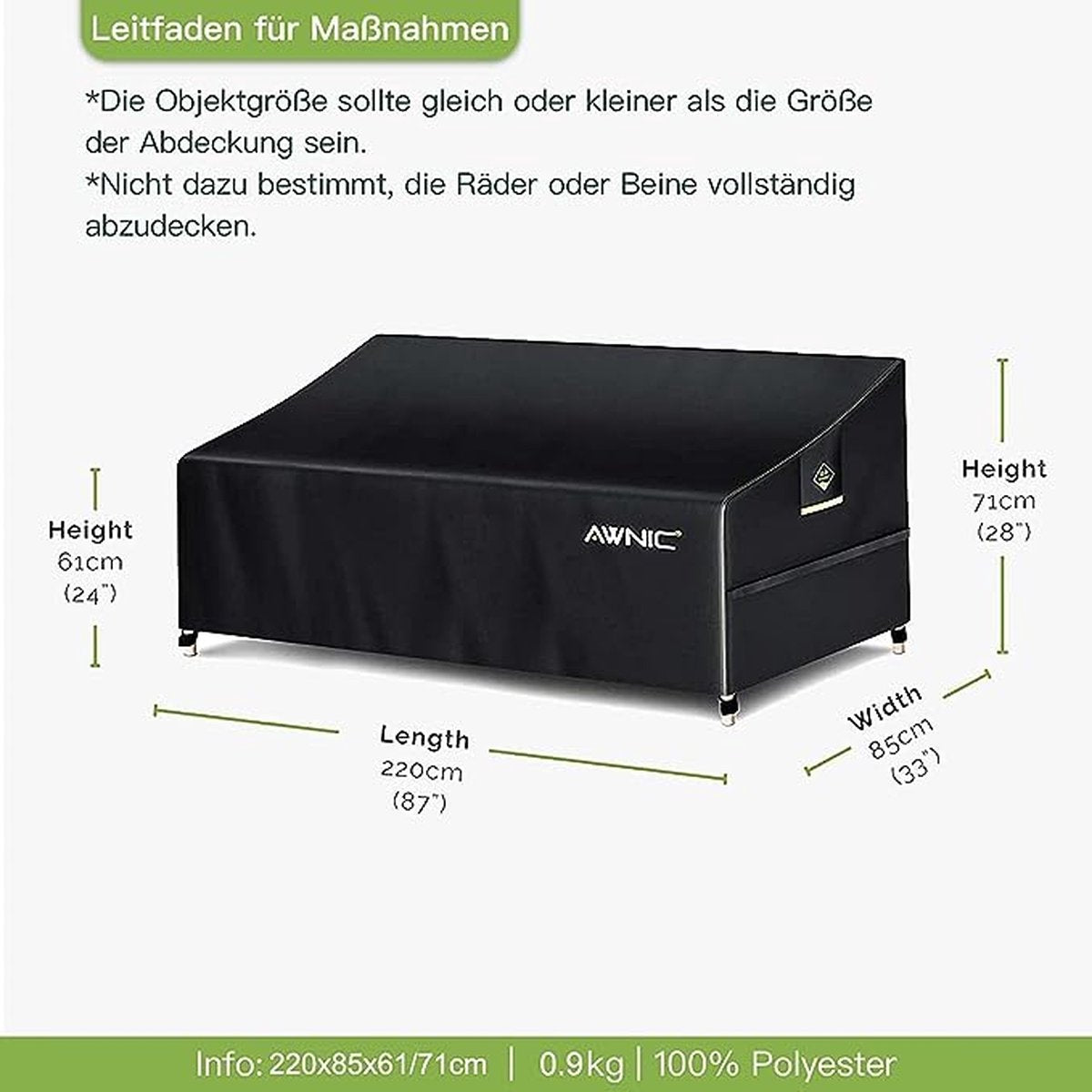 - Afmetingen: 220x85x61/71cm, de beschermhoes van AWNIC beschermt uw tuinmeubilair tegen regen, zonlicht, stof en duiven wanneer het niet in gebruik is.