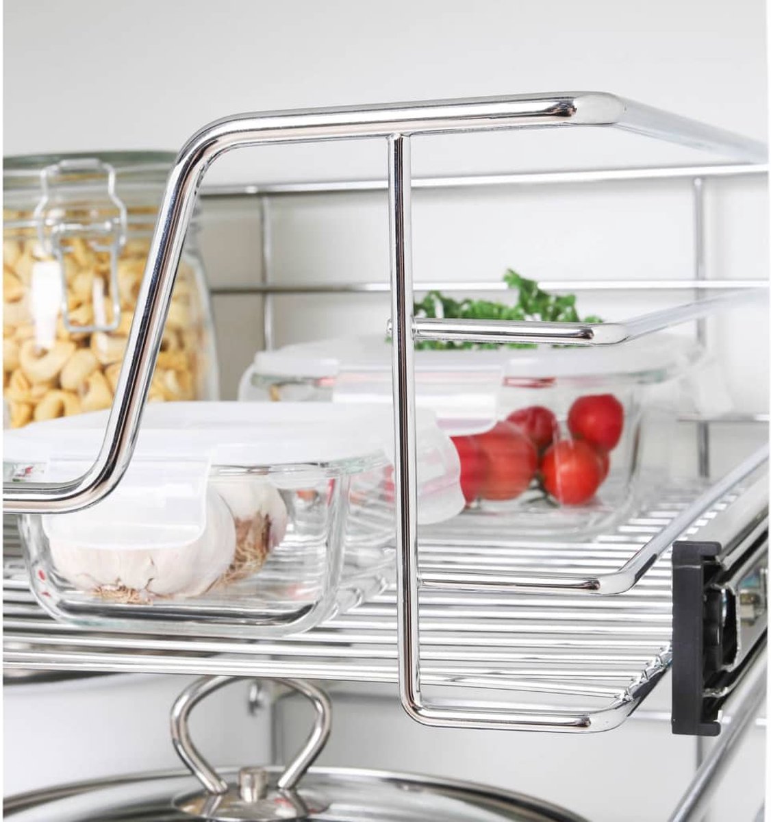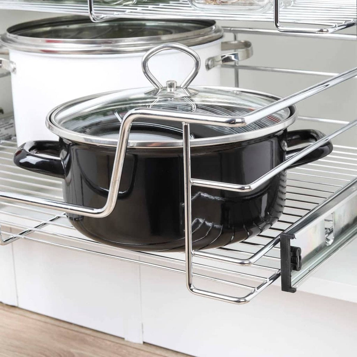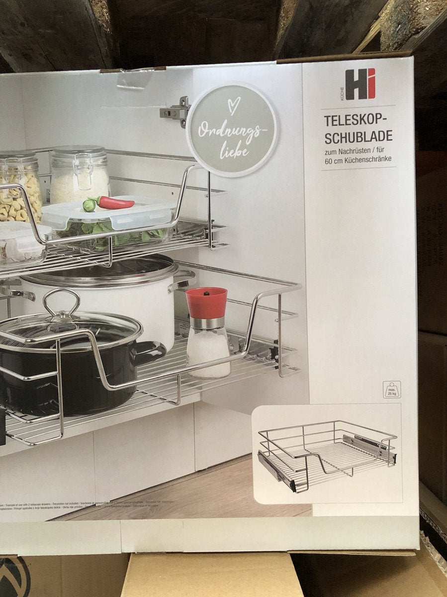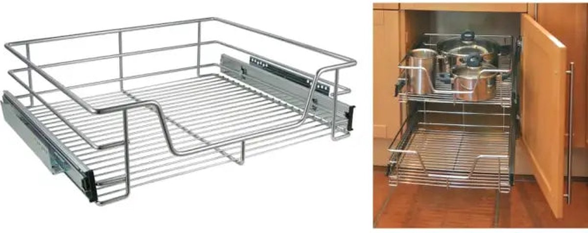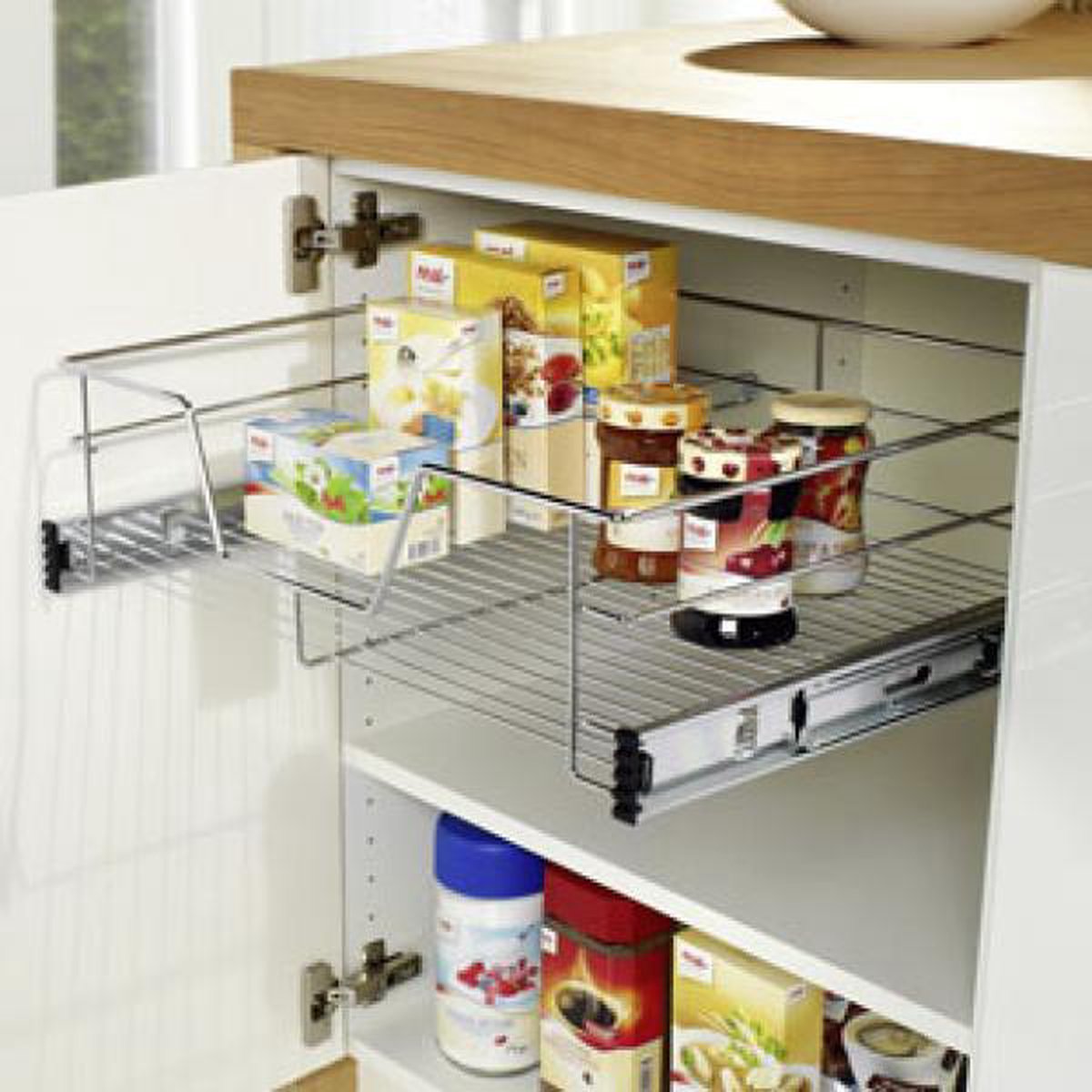 Deze HI telescopische schuifmand is eenvoudig te installeren in je keukenkastje om de opbergruimte te maximaliseren en te helpen het keukenkastje netjes en georganiseerd te houden.