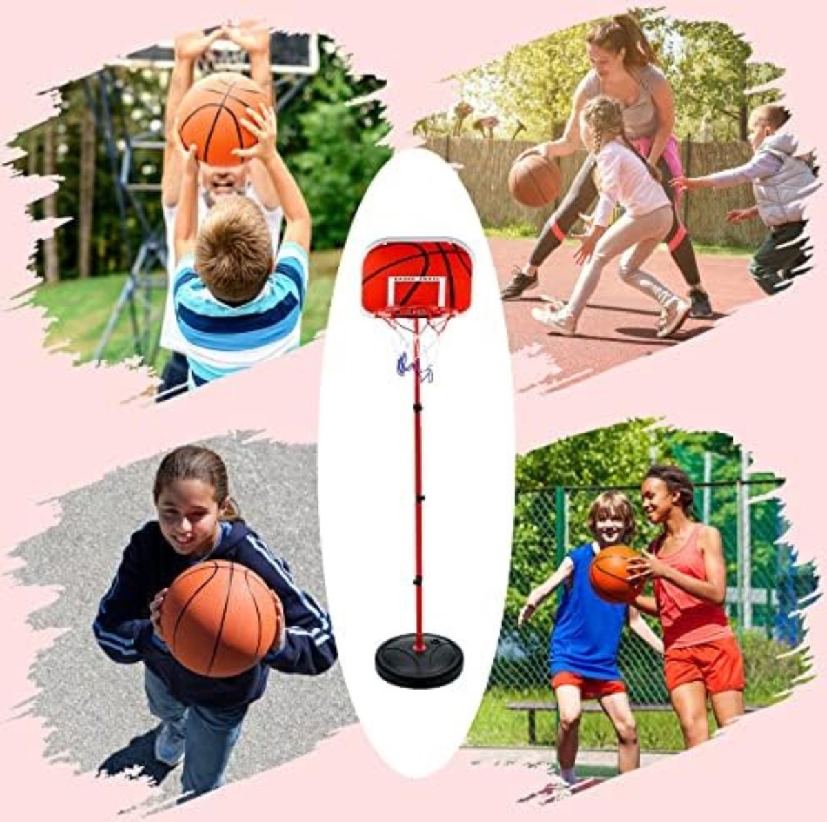 Draagbare basketbal hoepel voor kinderen: basketbal hoepel is gemakkelijk te dragen en te verplaatsen. Kinderen kunnen binnen of buiten genieten van deze spannende basketbalring met ouders en hun vrienden.