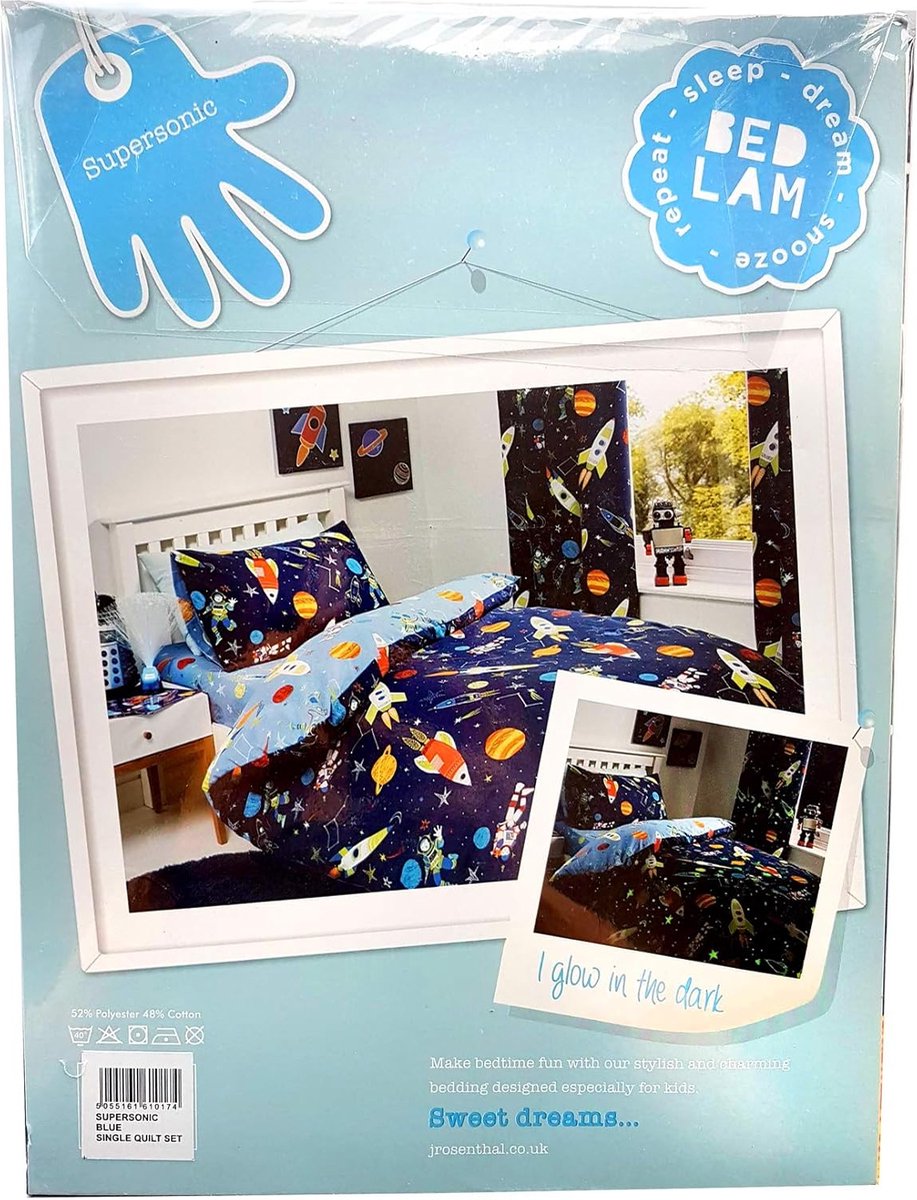 Bedlam Supersonic Dekbedovertrekset, licht op in het donker, 52% polyester, 48% katoen, blauw, dekbedovertrekset: eenpersoons