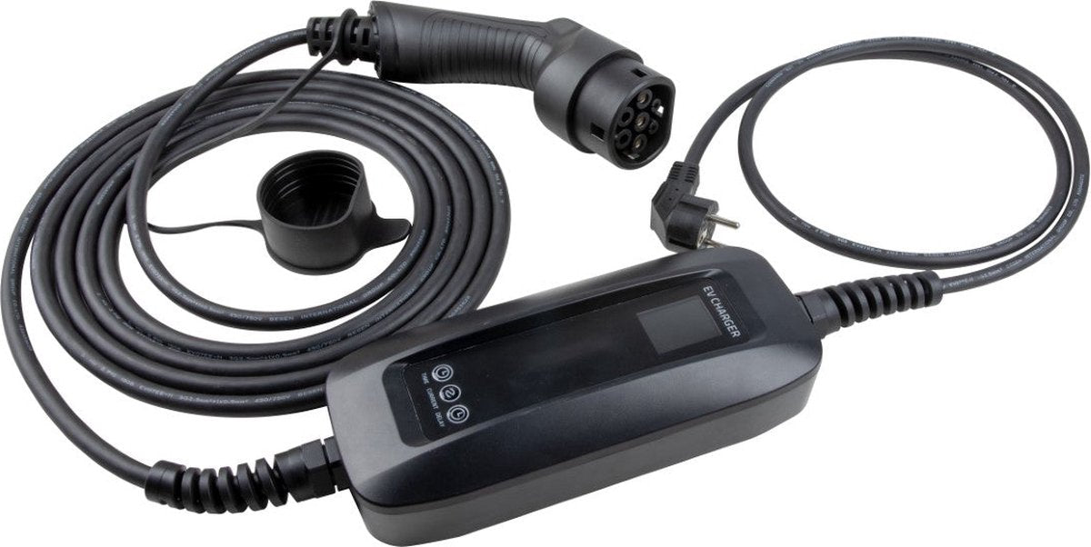 Besen Mobiele Lader LCD Zwart Type 2 naar Schuko - Uitgesteld laden en Memory functie - 5 meter