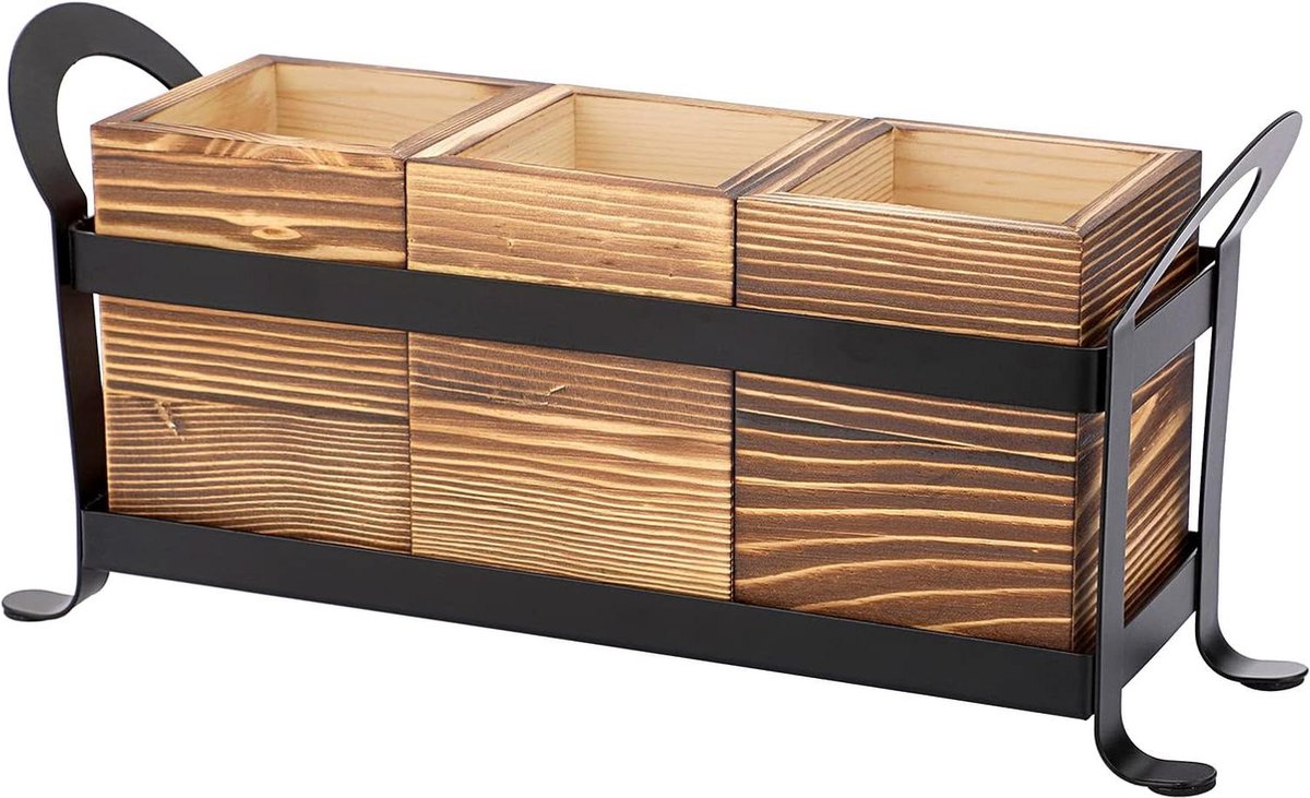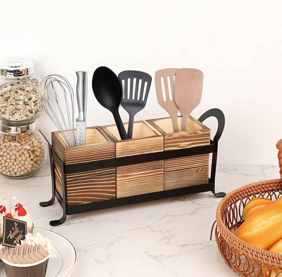 De eenvoudige, maar handige gebruiksvoorwerpenhouder heeft een uniek karakter dankzij het houten materiaal. Het past perfect bij jouw zilveren keukengerei en geeft een mooi contrast met houten servies. De set van 3 containers voldoet aan al jouw dagelijkse behoeften en voegt een vleugje verfijning toe aan jouw keuken in landelijke stijl.
