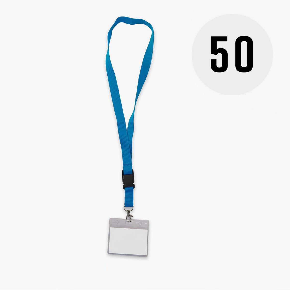 Blauw keycord met badge-/pashouder, per 50 stuks