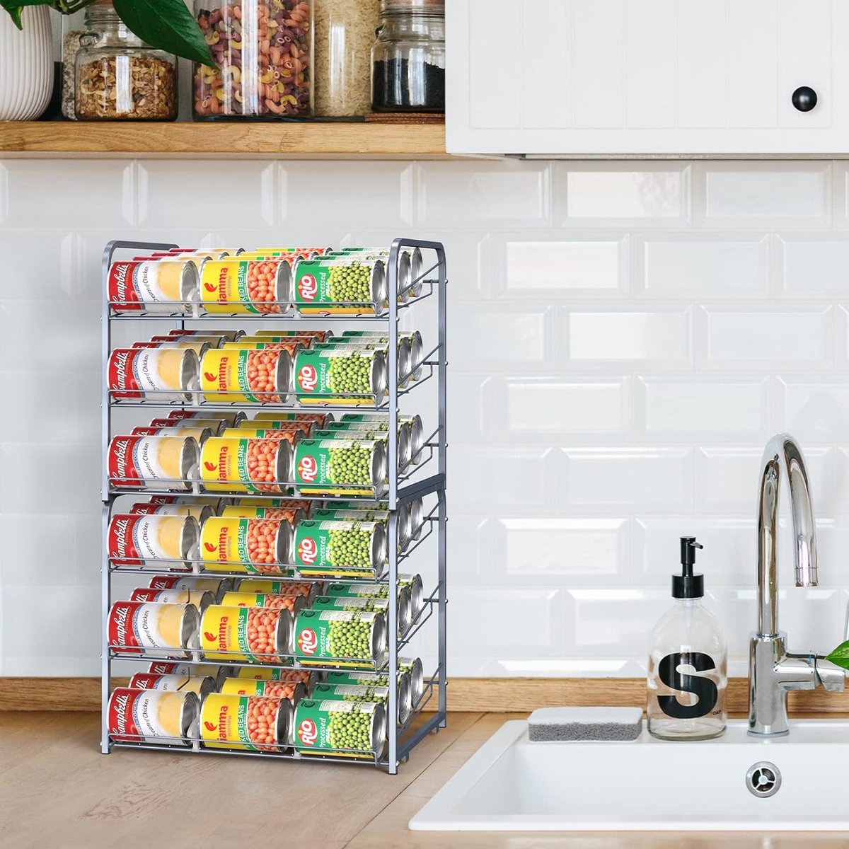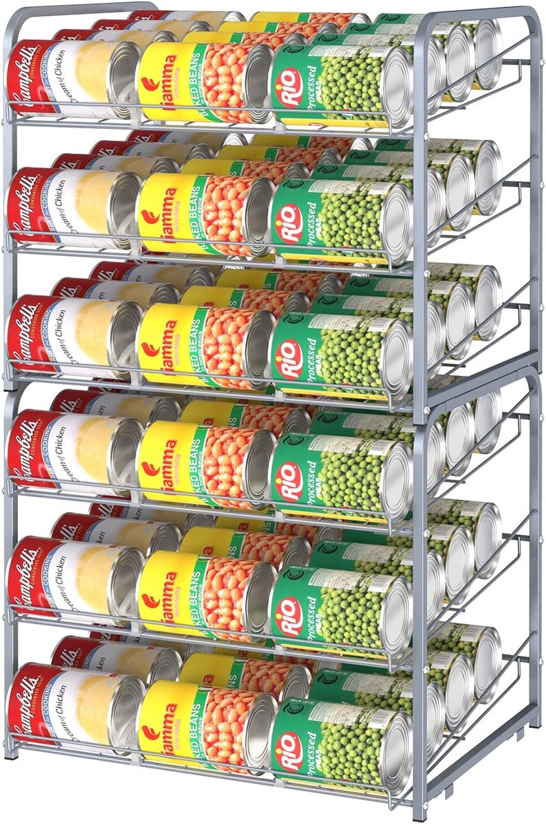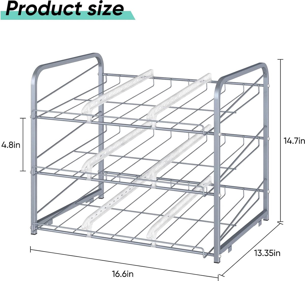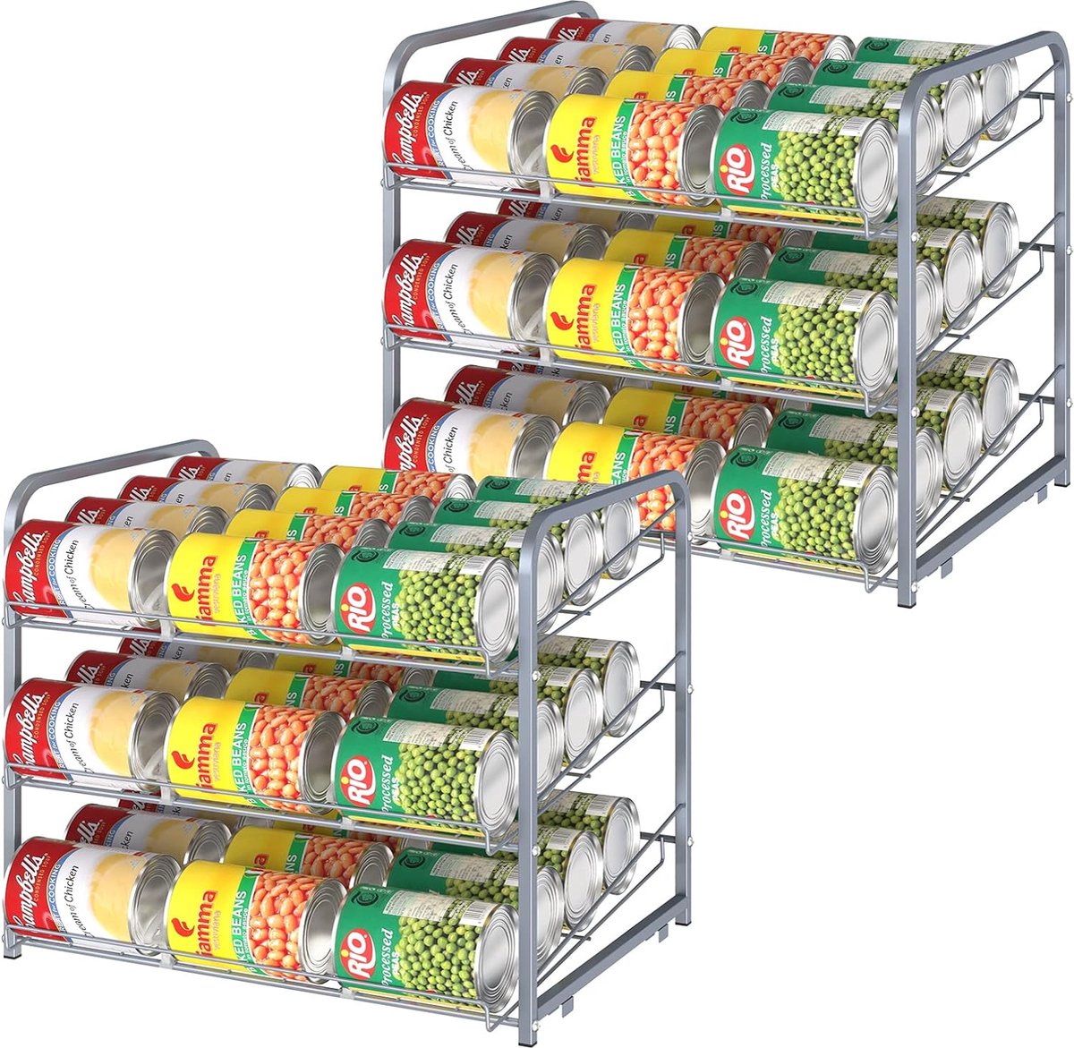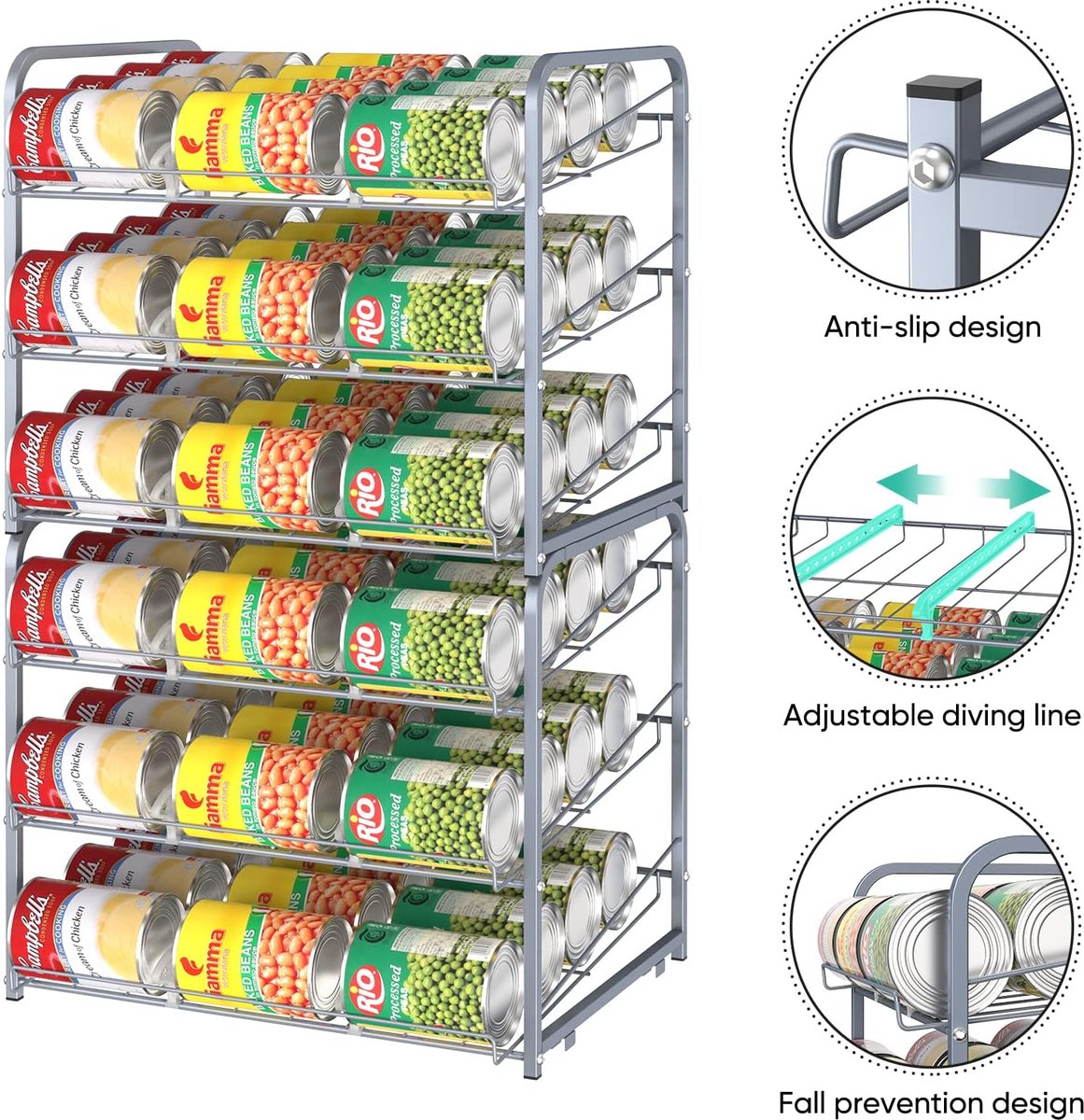 2-pack blikjesrekorganizer】 Biedt gemakkelijk plaats aan maximaal 72 blikjes; Ideaal voor het organiseren en creëren van opbergruimte in voorraadkasten, kasten en werkbladen Stapelbaar en kantelbaar ontwerp】Plaats eenvoudig een ander rek erop om de opslagcapaciteit uit te breiden. De kantelhoek van het blikjesrek bedraagt ​​15 graden voor gemakkelijke toegang 【Verstelbare verdelers】Zes verstelbare verdelers bieden flexibiliteit voor het netjes uitlijnen en opbergen van blikjes, potten en drankblikjes 【Stabiliteitsconstructie】Gemaakt van stevig, duurzaam metaalmateriaal en sterke ijzeren buizen; Rubberen pads voorkomen uitglijden of krassen op het oppervlak 【Afmetingen:】16,53" B x 13,38" D x 14,76" H. Het pakket bevat montagegereedschap en is eenvoudig te installeren
