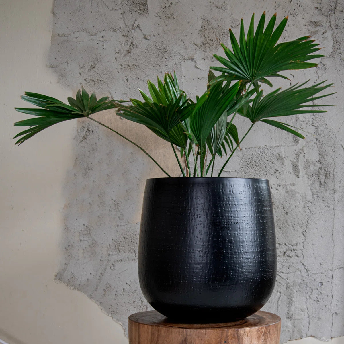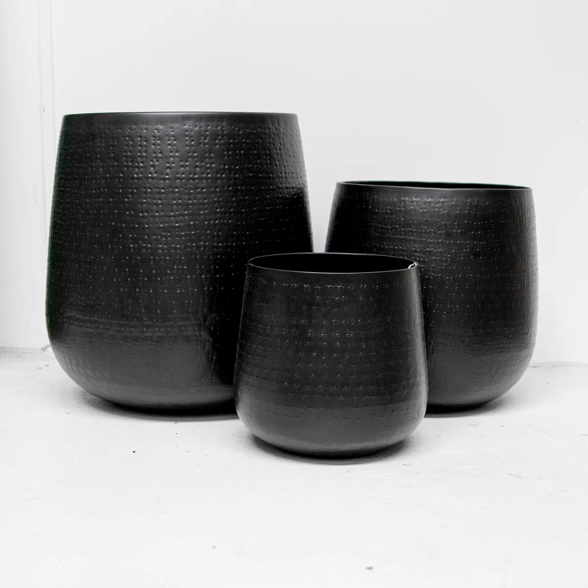 Bloempotten - plantenpot Oliver L - mat zwart - gehamerd metaal - waterdicht - rond