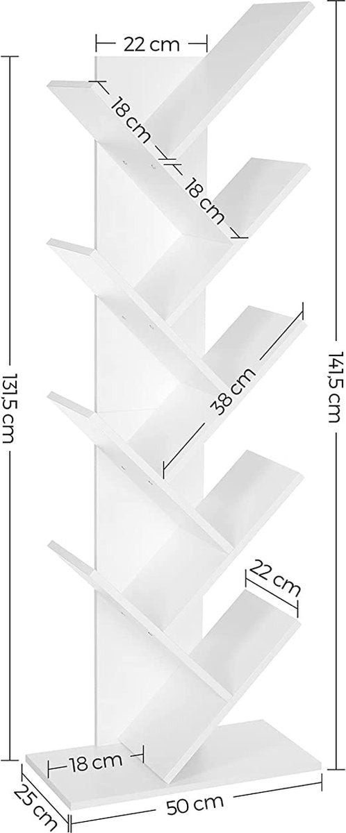 Met zijn geometrische silhouet is deze boomvormige boekenplank een uitnodigend meubel in uw huis/kantoor. Vul de planken met meerdere secties met uw favoriete boeken om een ??opvallend display te creëren.