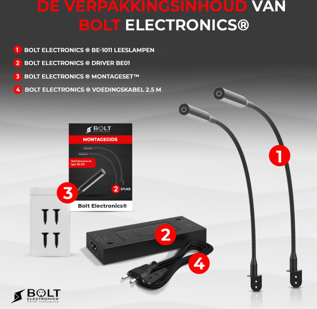 Ben je op zoek naar een hoogwaardig leeslampje die je gemakkelijk en snel op ieder hoofdbord van een boxspring of bed kan bevestigen? Dan heb je gevonden wat je zocht! De Bolt Electronics® leeslamp is voorzien van een flexibele arm en het heeft een slanke vormgeving, waardoor je de leeslamp eenvoudig in de gewenste positie kan plaatsen.
