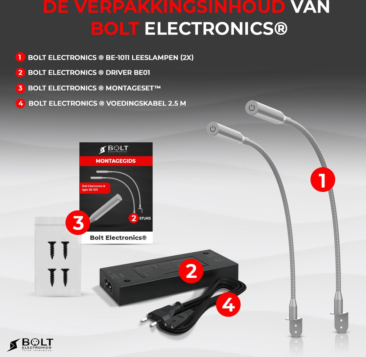 Bolt Electronics® LED bedlampjes hoofdbord - leeslamp boxspring - aluminium - flexibele arm - dimbaar - leeslamp - 2 stuks - 50 x 5 x 2 cm - 2700k