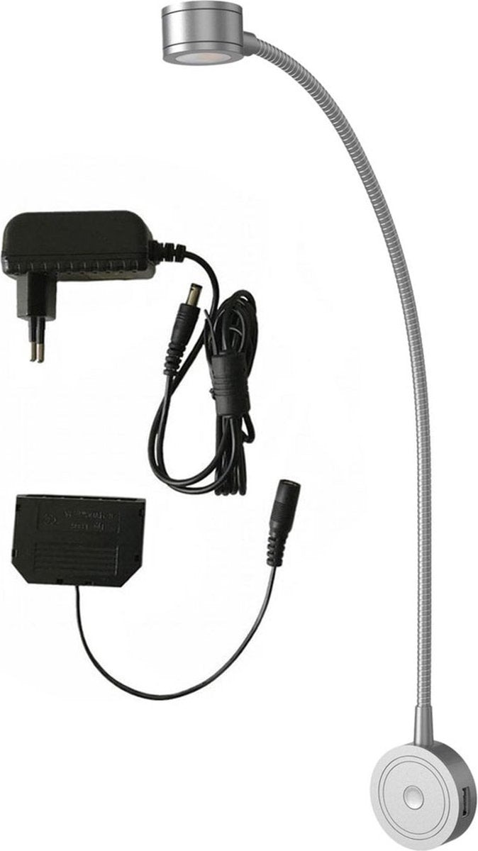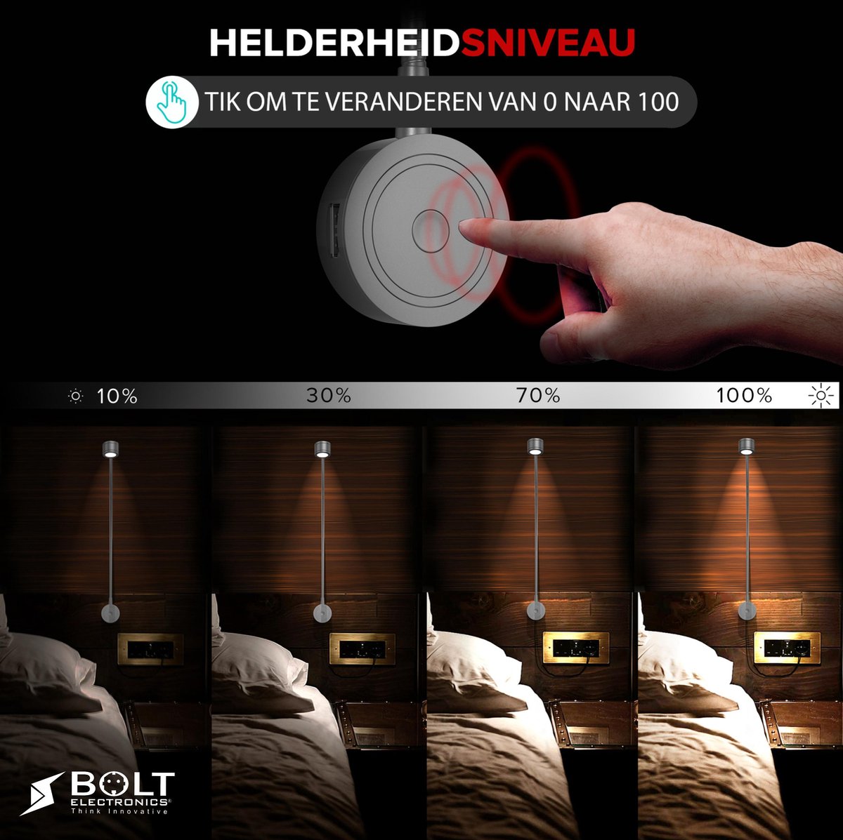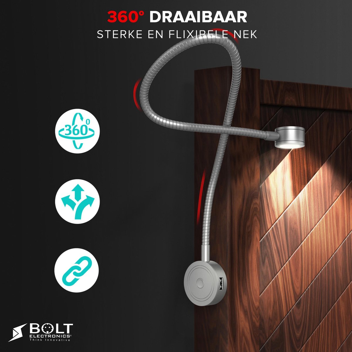 Bolt Electronics® Leeslamp 1 stuk – Bedlamp met 2 USB's - Nachtlampje voor Volwassenen - Wandlamp met Dimfunctie - zilver - 220 V - 53 CM