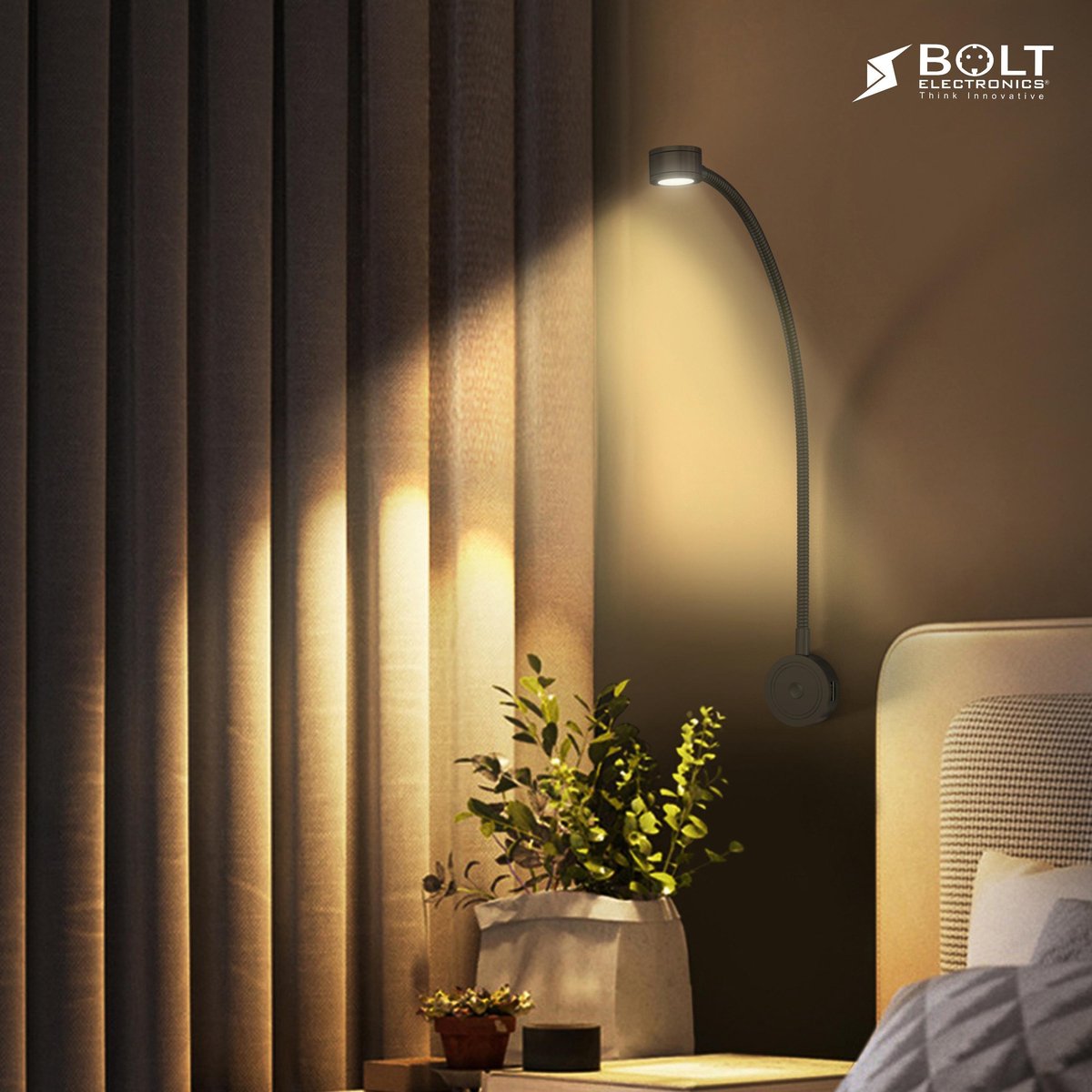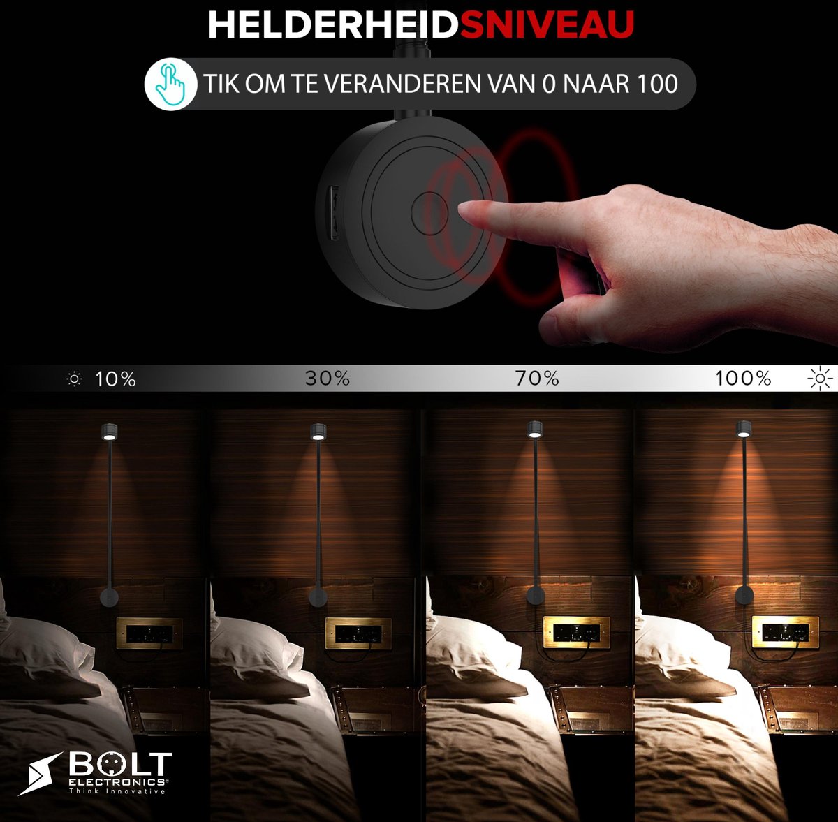 Bolt Electronics® Leeslamp 1 stuk – Bedlamp met 2 USB's - Warm licht - Nachtlampje voor Volwassenen - Wandlamp met Dim-functie - Modern ontwerp - Gemakkelijk in gebruik - Zwart
