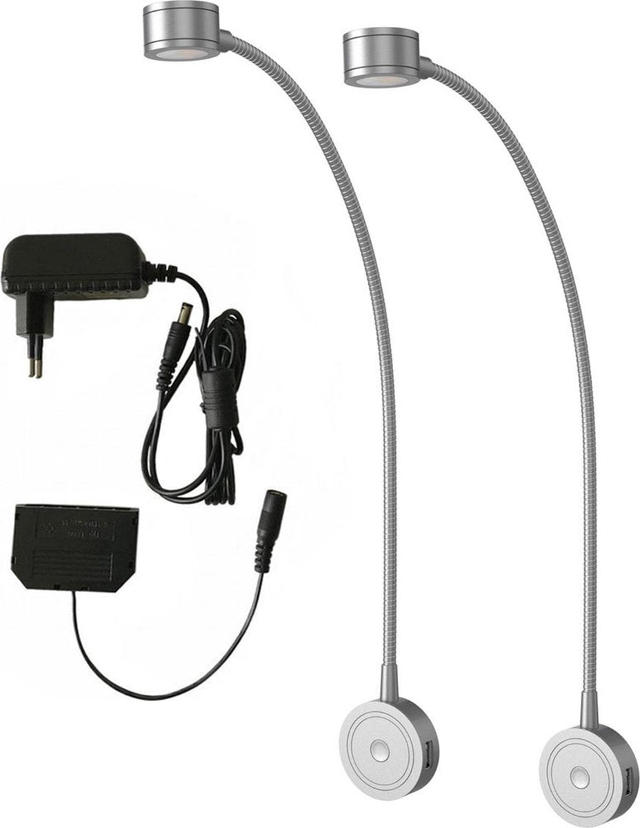 • 2x Bolt Electronics® 1001 bedlamp zilver van hoogwaardig aluminium