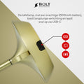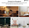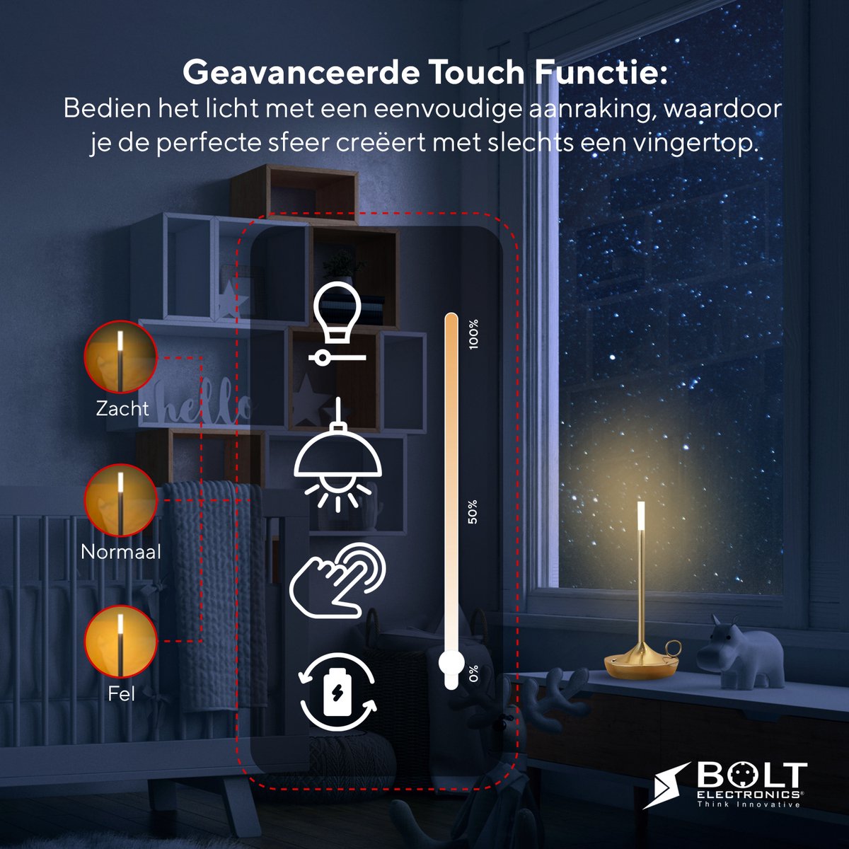 De Bolt Electronics® tafellamp is niet alleen stijlvol, maar ook energie-efficiënt en duurzaam. Dankzij de geavanceerde oplaadbare batterij geniet je urenlang van ononderbroken, helder licht zonder constant te hoeven opladen. Ideaal voor een milieubewuste levensstijl en perfect voor diegenen die waarde hechten aan zowel schoonheid als functionaliteit in hun verlichting keuzes.