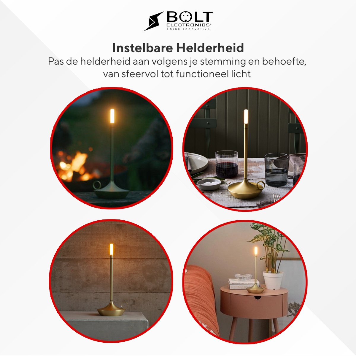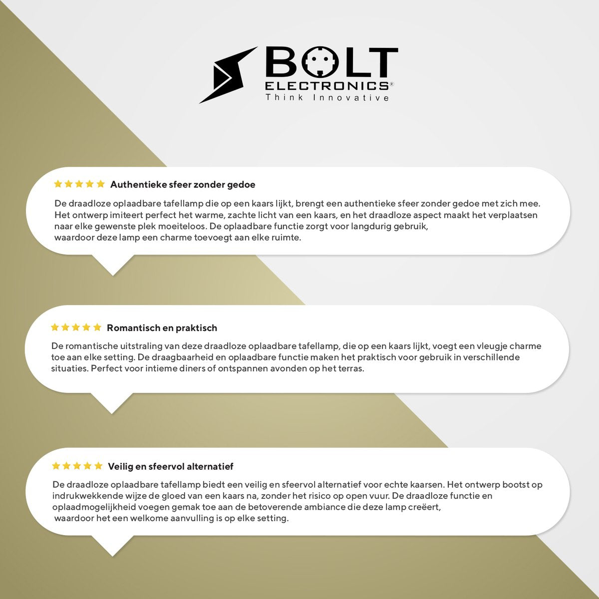 Beleef de sfeer van kaarslicht met moderne technologie. Bestel nu de Bolt Electronics® tafellamp!