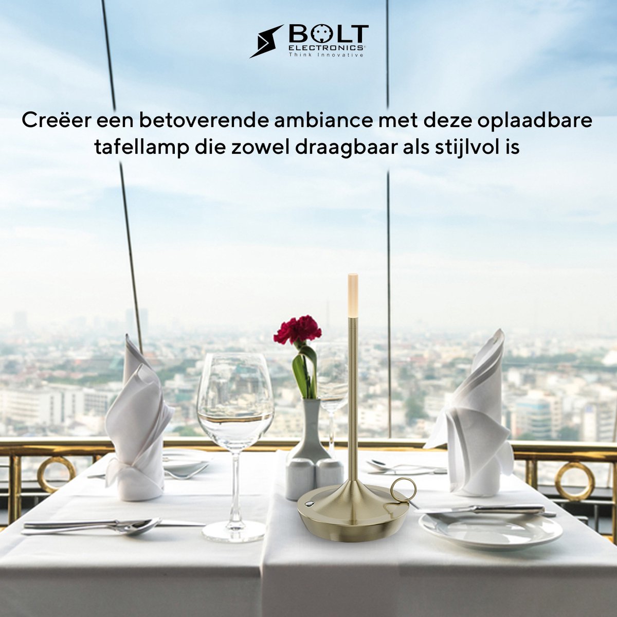 Ontdek de magie van licht in elk aspect van je leven met de Bolt Electronics® tafellamp! Speciaal ontworpen voor restaurants, maar ook voor thuisgebruik. Deze fantastische tafellamp brengt de perfecte balans tussen functionaliteit en esthetiek. Oplaadbaar, draadloos en met een industrieel tintje, past het naadloos in restaurants, maar ook thuis in de slaapkamer of woonkamer. Een moderne knipoog naar de romantische kaarsverlichting, ideaal om warme diners en intieme avonden te verlichten. Geef je ruimte een unieke touch met onze tafellampen.