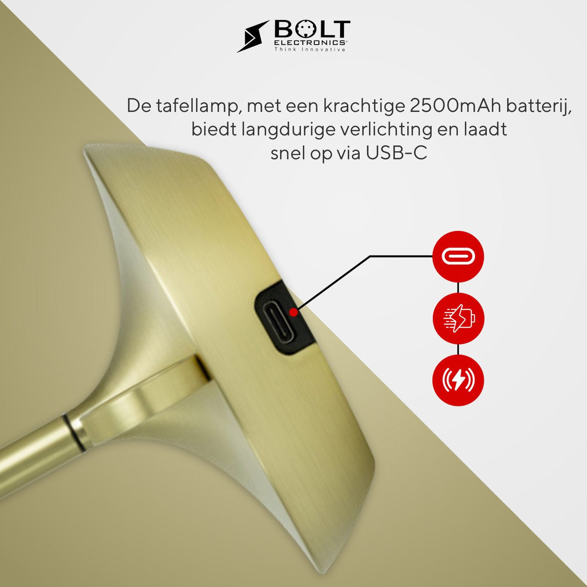 Bolt Electronics® - Tafellamp oplaadbaar- Tafellampen - Slaapkamer - Woonkamer - Industrieel - Ø12 cm