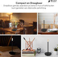 Onze tafellamp is niet alleen voor licht, maar ook een kunstwerk voor elke plek. Of het nu gaat om het creëren van een sfeervolle omgeving in je restaurant of het toevoegen van een warme gloed aan je woonkamer, deze lamp kan het allemaal. Met zijn oplaadbare en draadloze design biedt het de ultieme flexibiliteit om elke ruimte te transformeren zonder dat je lelijke kabels ziet.