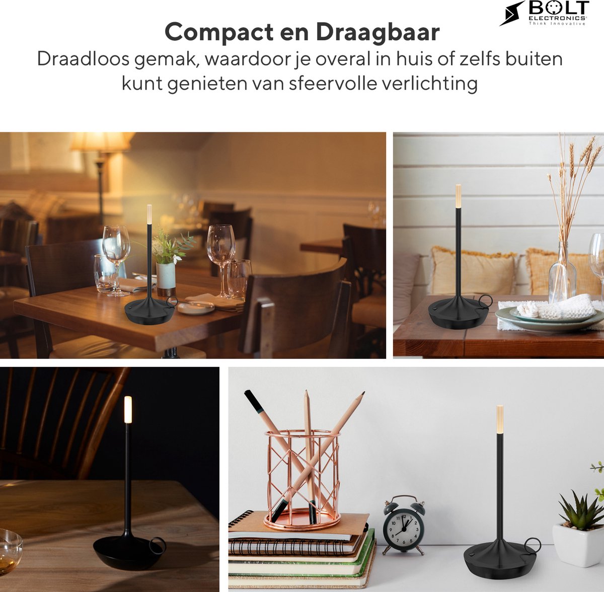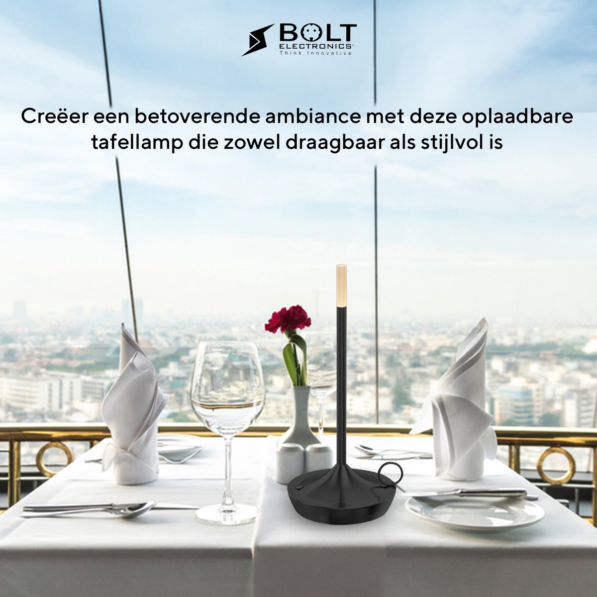 Ontdek de magie van licht in elk aspect van je leven met de Bolt Electronics® tafellamp! Speciaal ontworpen voor restaurants, maar ook voor thuisgebruik. Deze fantastische tafellamp brengt de perfecte balans tussen functionaliteit en esthetiek. Oplaadbaar, draadloos en met een industrieel tintje, past het naadloos in restaurants, maar ook thuis in de slaapkamer of woonkamer. Een moderne knipoog naar de romantische kaarsverlichting, ideaal om warme diners en intieme avonden te verlichten. Geef je ruimte een unieke touch met onze tafellampen.