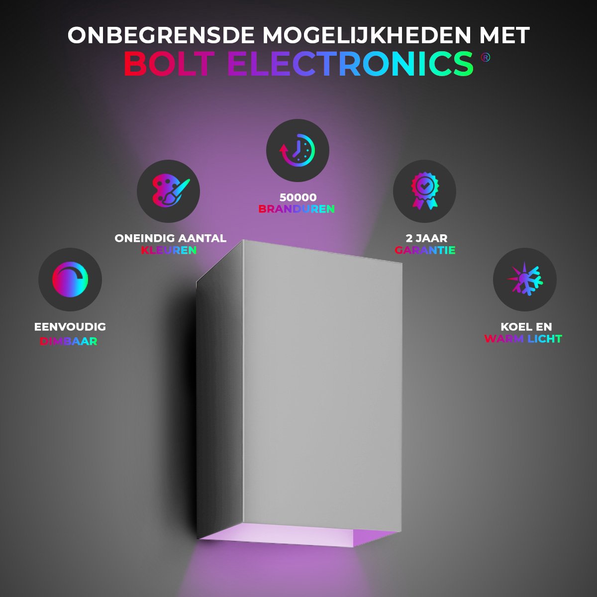 Bolt Electronics® – Wandlamp binnen – RGB – LED verlichting – Bedlamp - Wit - 2 stuks