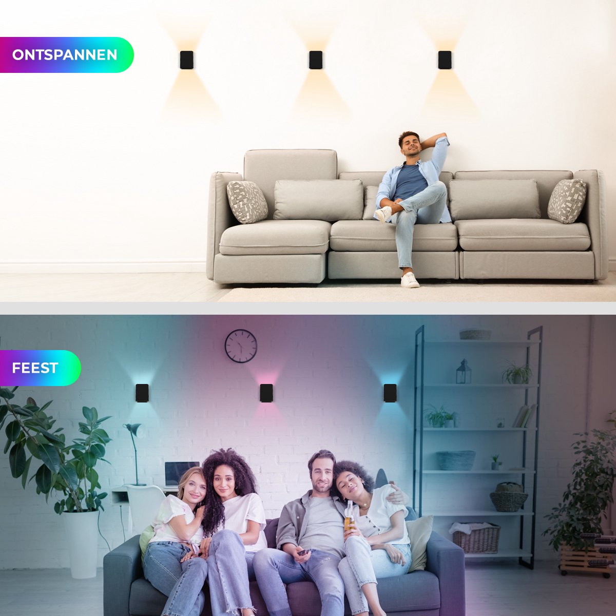 Bolt Electronics® – Wandlamp binnen – RGB – LED verlichting – Bedlamp - Zwart - 2 stuks