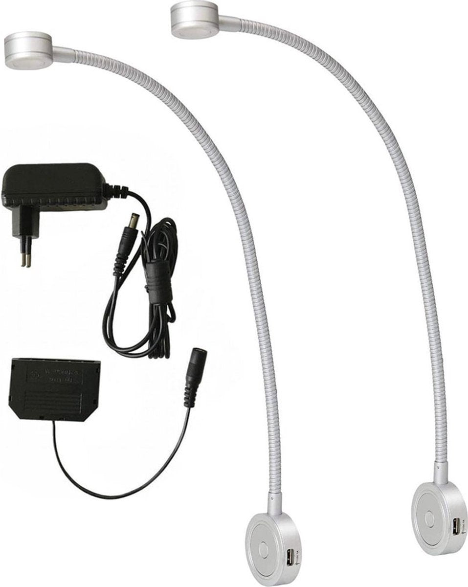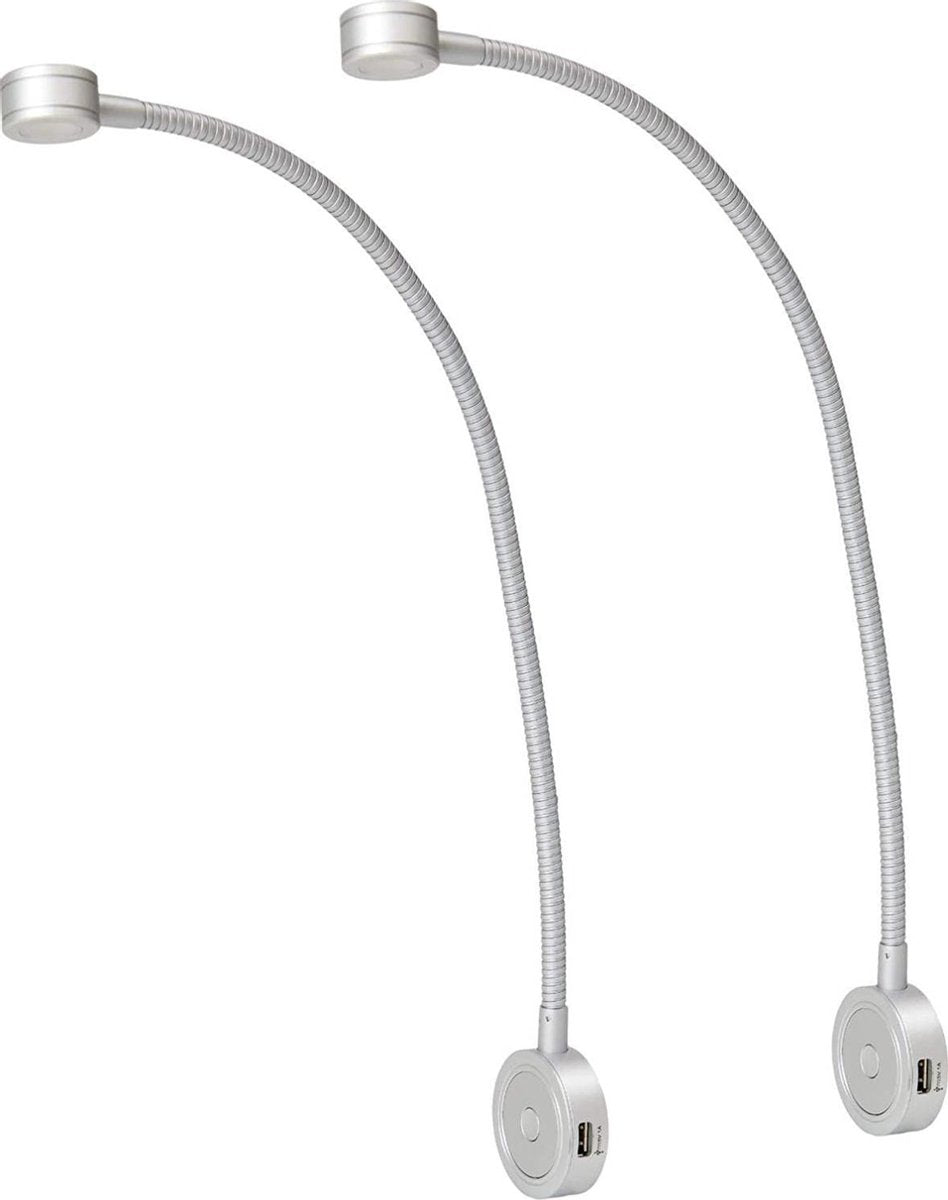 Bolt Electronics ® – Leeslamp – Bedlampje – Leeslamp slaapkamer – Leeslampje voor boek – Flexibel leeslampje – LED – 1001-A – Dimbaar – met 2 x USB - Aluminium – 2 stuks - CE 2020