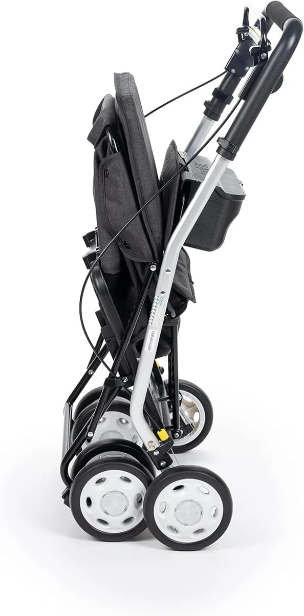 Boodschappentrolley-rollator met zitje, plooibare supermarkttrolley met 4 wielen met afneembare tas 29 l/15 kg en lade voor persoonlijke spullen, Lett800 Senior Comfort, zwart
