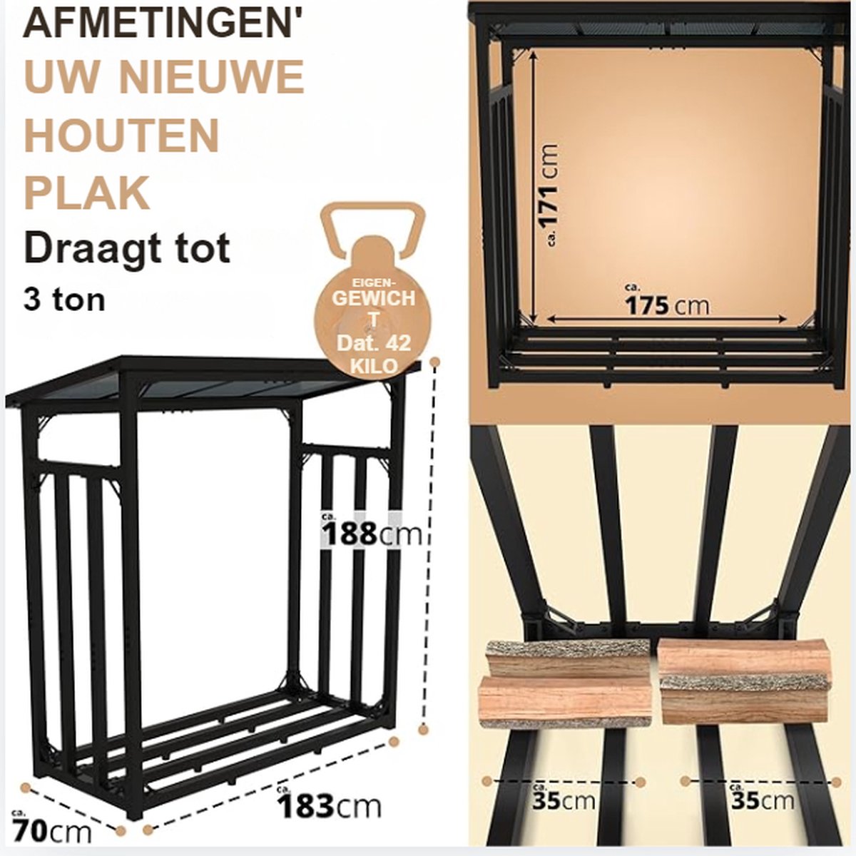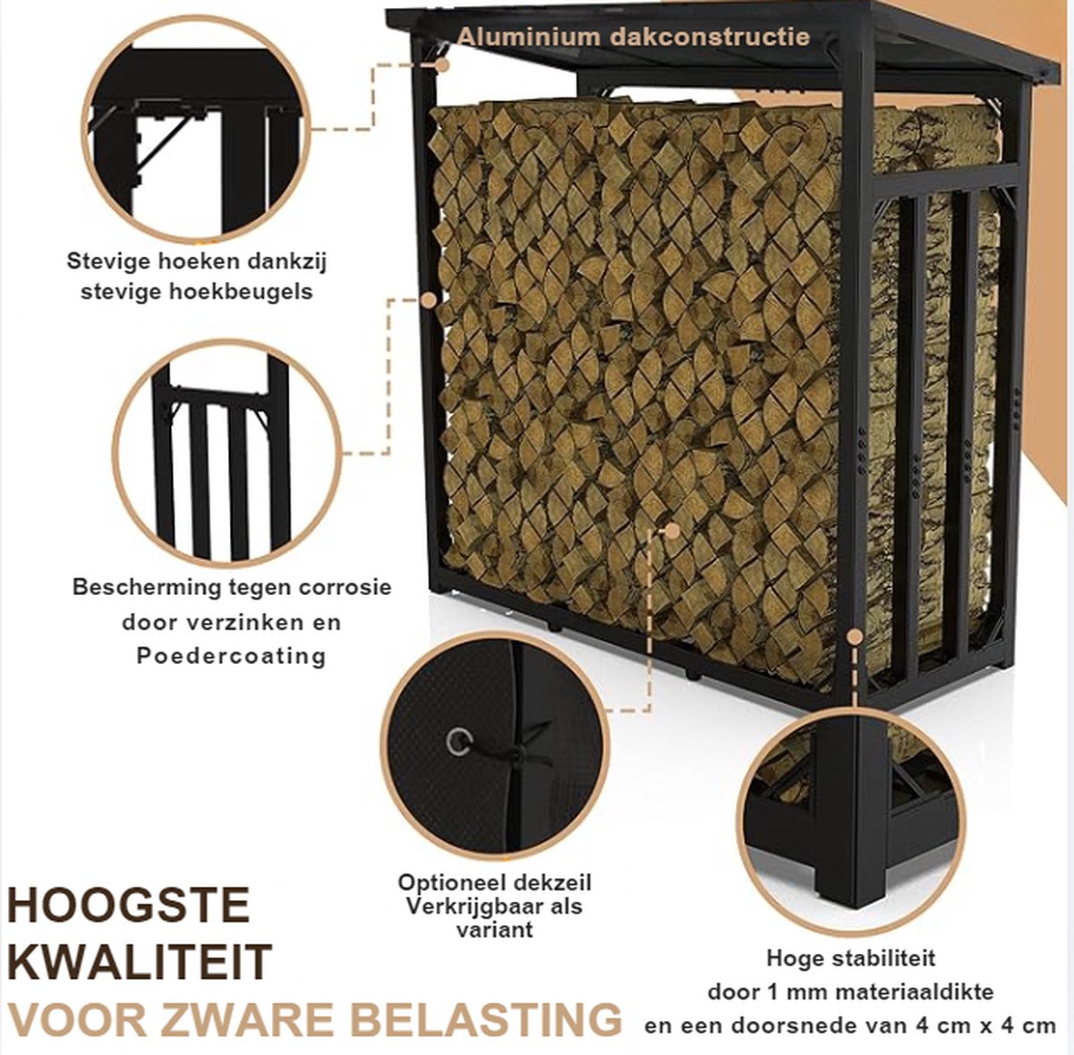• Ruimtebesparend design: Dit haardhout rek is ontworpen om efficiënt met ruimte om te gaan, zodat je hout netjes gestapeld en geordend blijft, zonder dat het veel ruimte in beslag neemt.