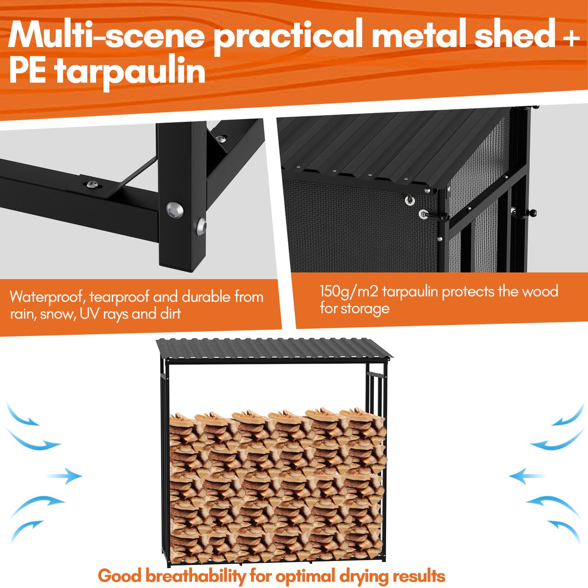 Het tijdloze antracietgrijze design past perfect in elke omgeving en geeft je tuin, terras of balkon een elegante uitstraling. Onze houtopslagrekken houden niet alleen uw hout droog en netjes, maar zijn ook eendecoratief element dat uw buitenruimte zal verfraaien.