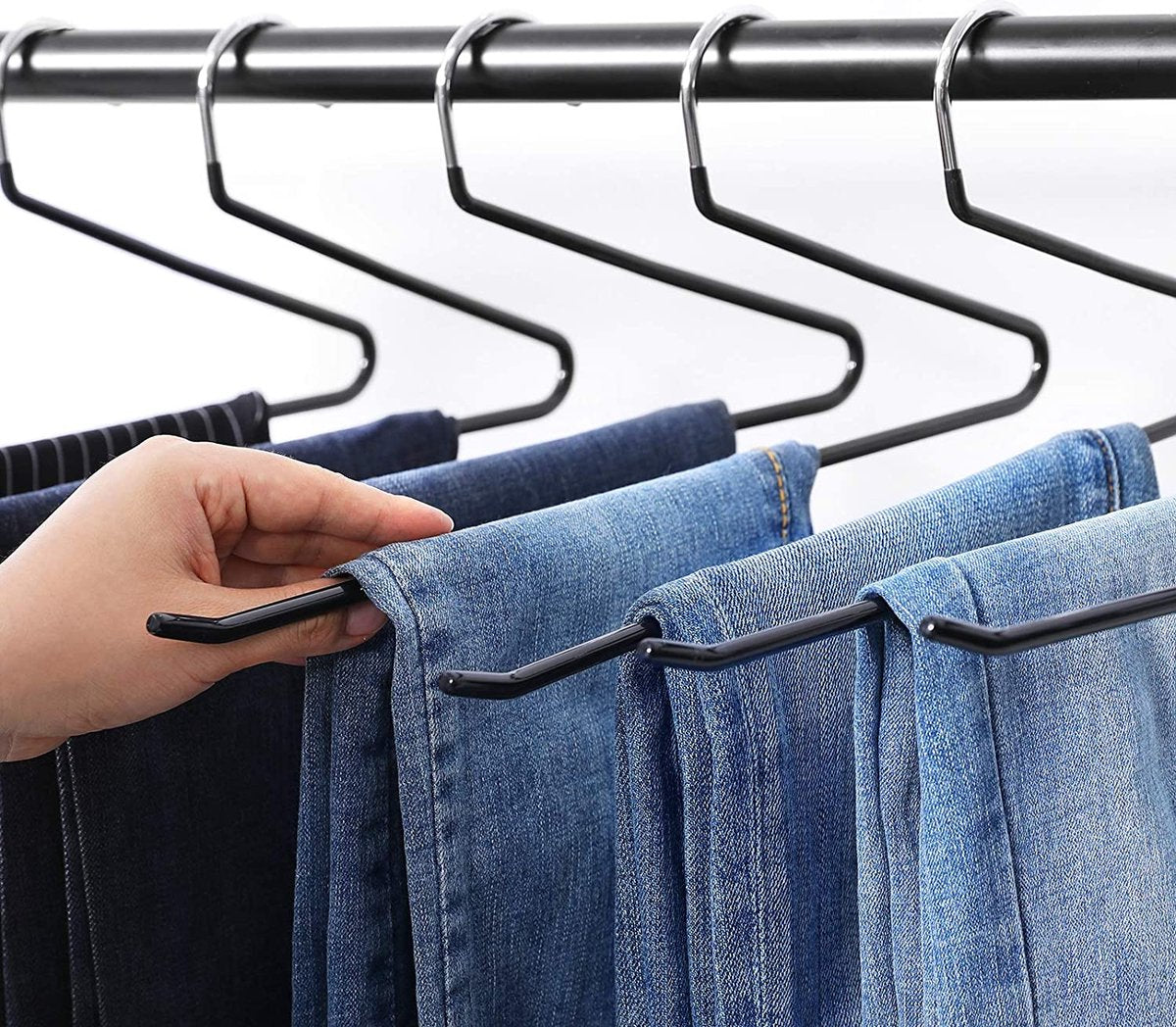 - EVERYTHING CLEAN AND ORDERLY: Robuuste metalen structuur, eenvoudige uitstraling - Deze broekenhangers dienen als praktische opberghulp in uw garderobe en zorgen voor een uniform beeld van jeans die netjes naast elkaar zijn opgesteld
