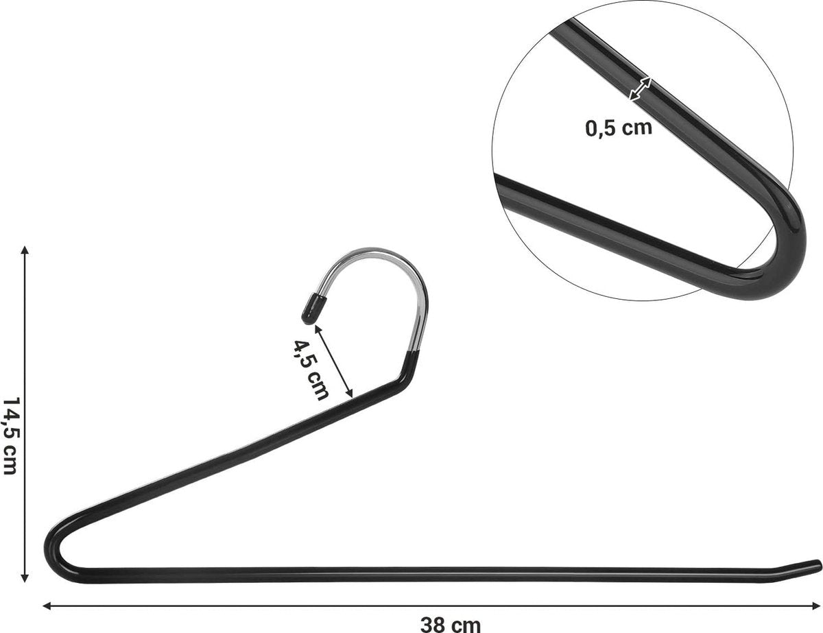 broekhanger van metaal, set van 20, kleerhanger, open ontwerp, anti-slip coating, ruimtebesparend, lengte 38 cm, zwart CRI008B01