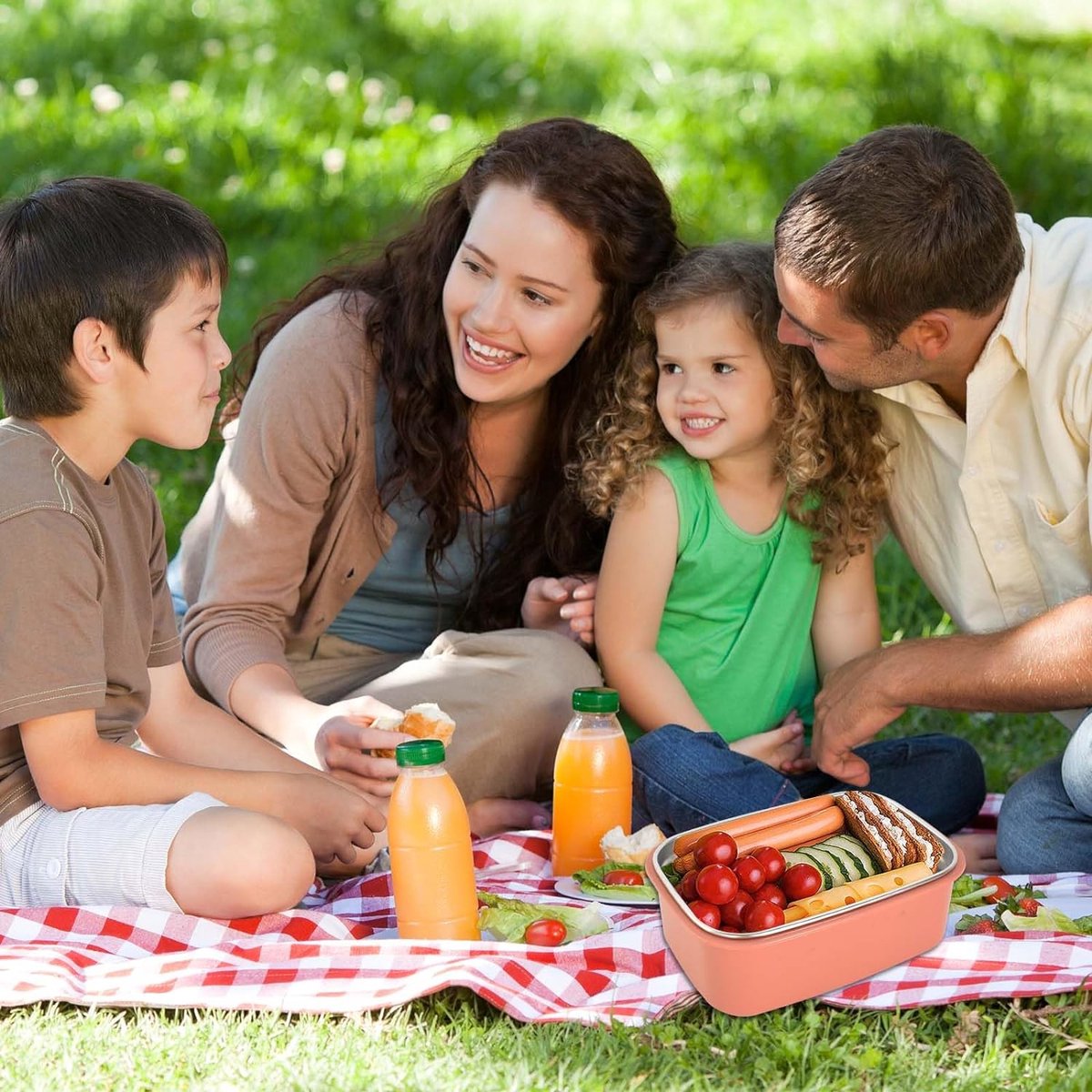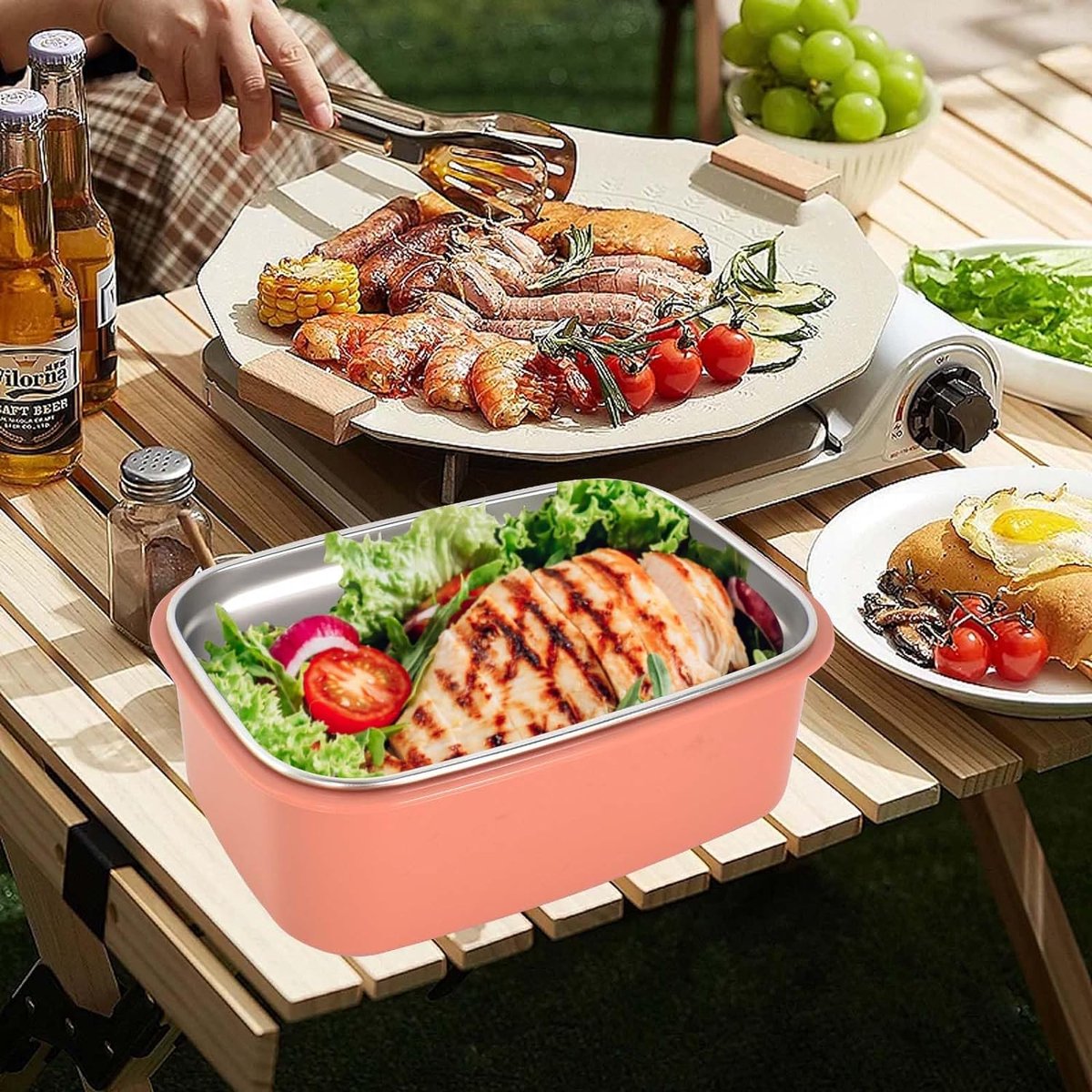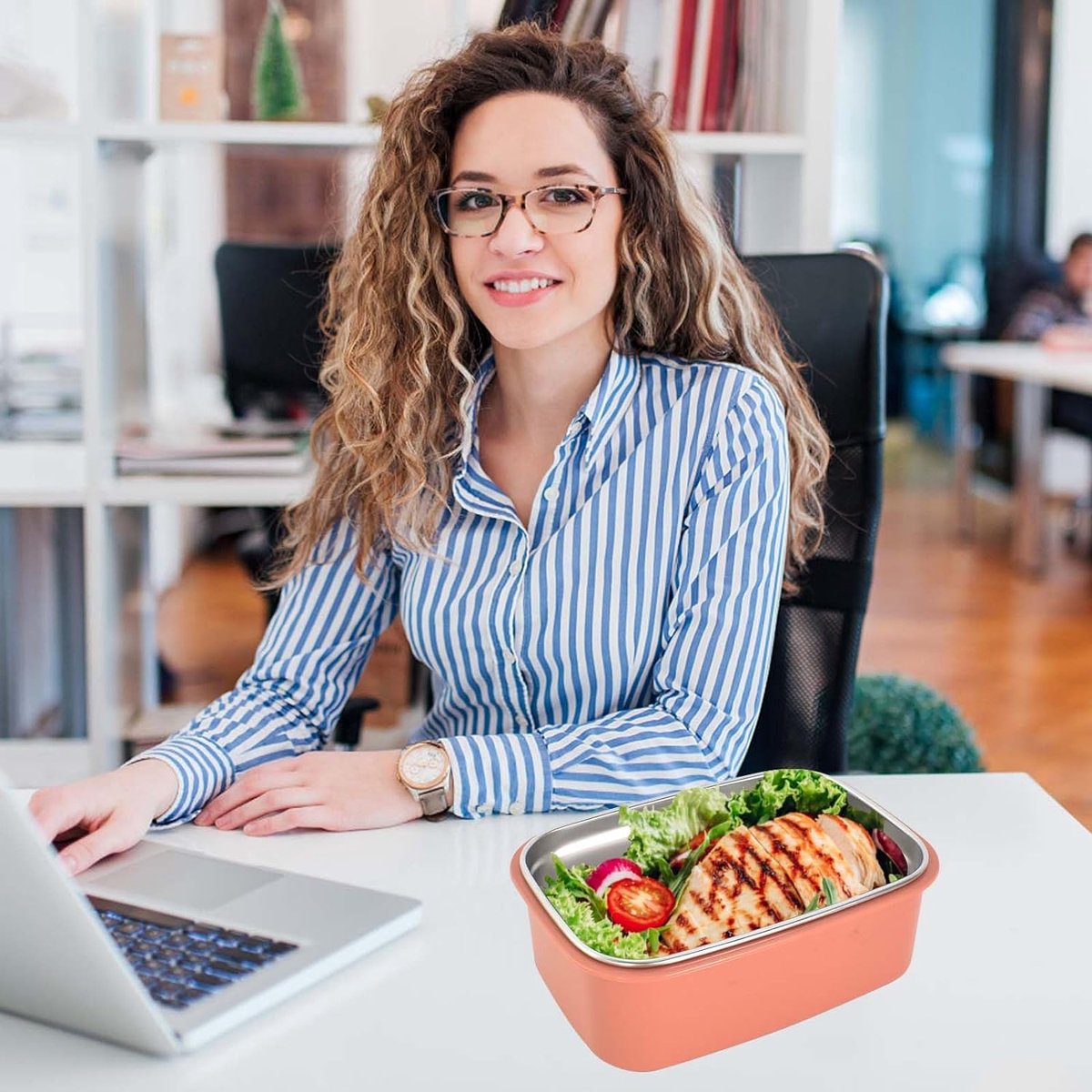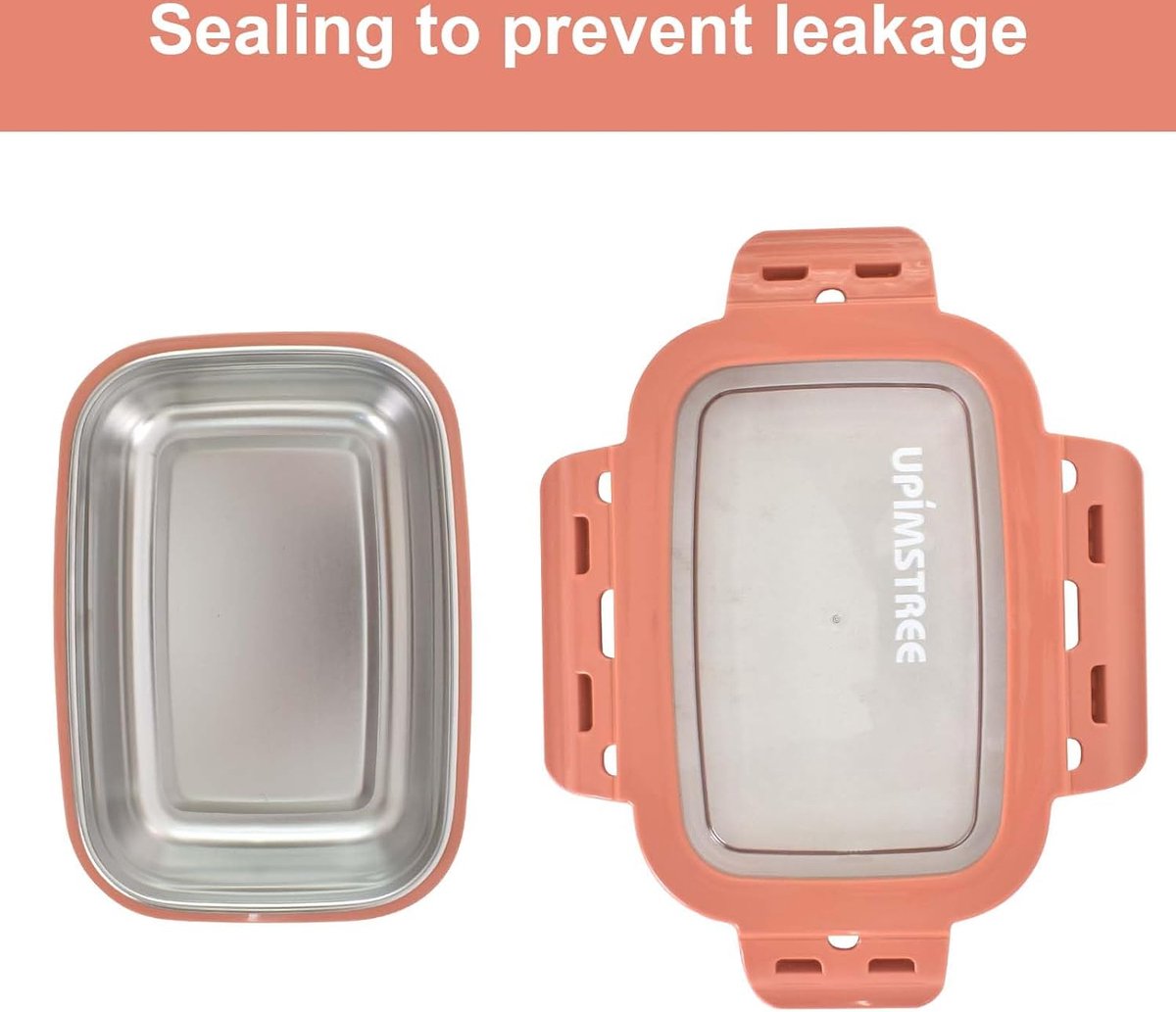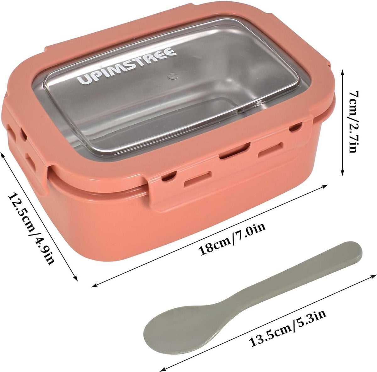 Praktische lunchbox: de binnencontainer van de lunchbox bestaat uit roestvrij staal, dat duurzaam is en niet gemakkelijk breekt. Afmetingen: 18 x 12,5 x 7 cm, inhoud 800 ml, met een lepel, maakt het draagbaar en gemakkelijk mee te nemen. Het is een goede keuze voor de dagelijkse maaltijden. Magnetron- en vaatwasmachinebestendig: praktisch en veelzijdig. Met een temperatuurbereik van -20 °C tot +120 °C is deze lunchbox magnetron-, vaatwasser- en vriesbestendig (de magnetron kan niet worden gesloten en verwarmd en het deksel kan niet worden geplaatst). Verwarm maaltijden zorgeloos Lekvrij en duurzaam design: met superchique ergonomische clips en een effectieve siliconen afdichting blijven je levensmiddelen langer vers. Dankzij de absoluut lekvrije afdichting komt er geen morsen meer in je tas, Hurra! Met de uitneembare scheidingswand kun je levensmiddelen scheiden zoals in een bentobox. Ideaal voor alle soorten voedselopslag, ook voor olieachtige en zure levensmiddelen. Gemakkelijk te reinigen: je kunt het met warm water met de hand of in de vaatwasser wassen en vervolgens droog deppen om watervlekken te voorkomen. Multifunctioneel: deze lekvrije lunchbox voor kinderen is niet alleen geschikt voor reizen, werk, schoolmaaltijden, maar ook voor diepvriesproducten in de koelkast. Hij kan basislevensmiddelen zoals sandwiches, brood, salades, pasta, steaks of fruit bevatten en maakt je leven eenvoudiger en comfortabeler