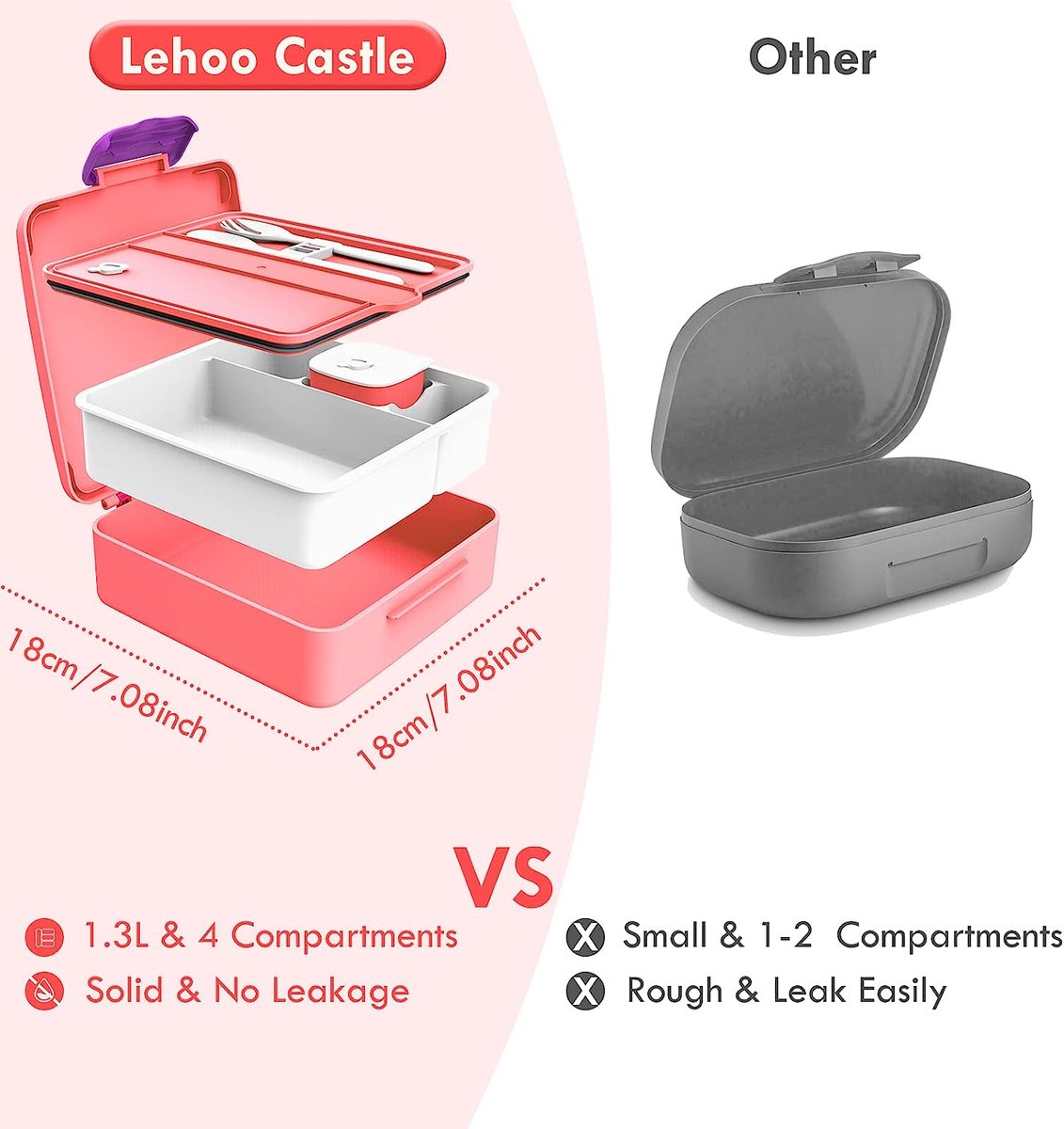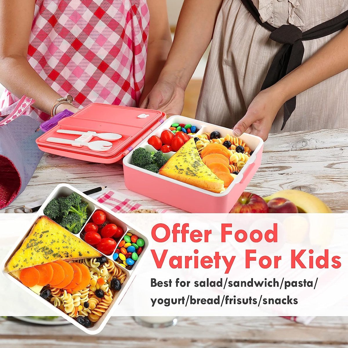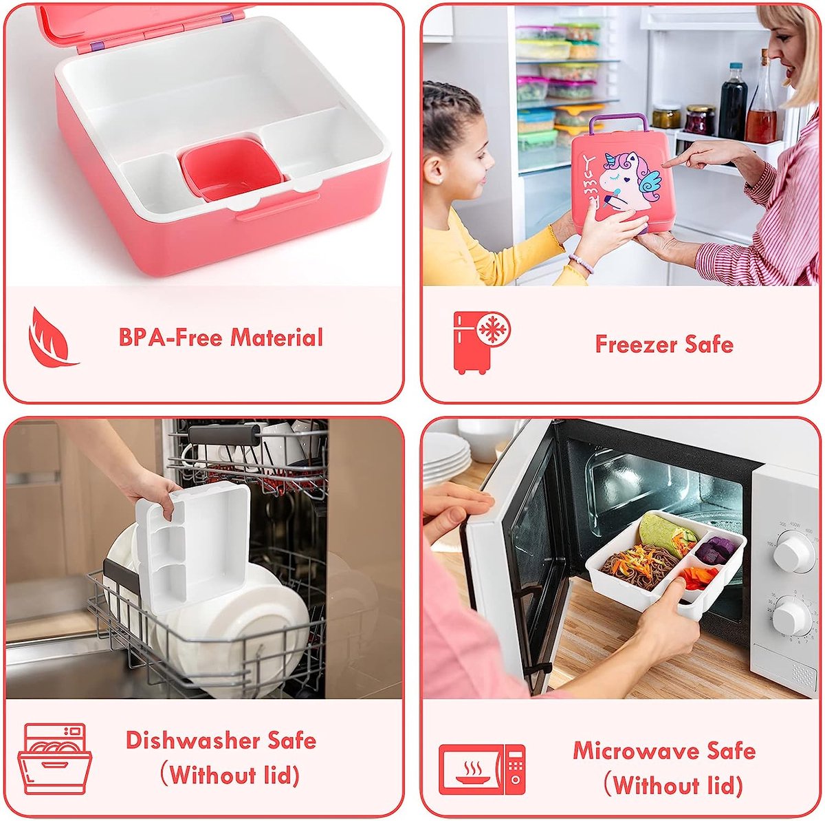· Een lunchbox voor iedereen: 4 praktische vakken zijn perfect voor de eetlust van een kind. Alles in één design, onze bento box bevat een bento box + een sausbakje + een lepel en een vork. Alles wat je nodig hebt is inbegrepen.