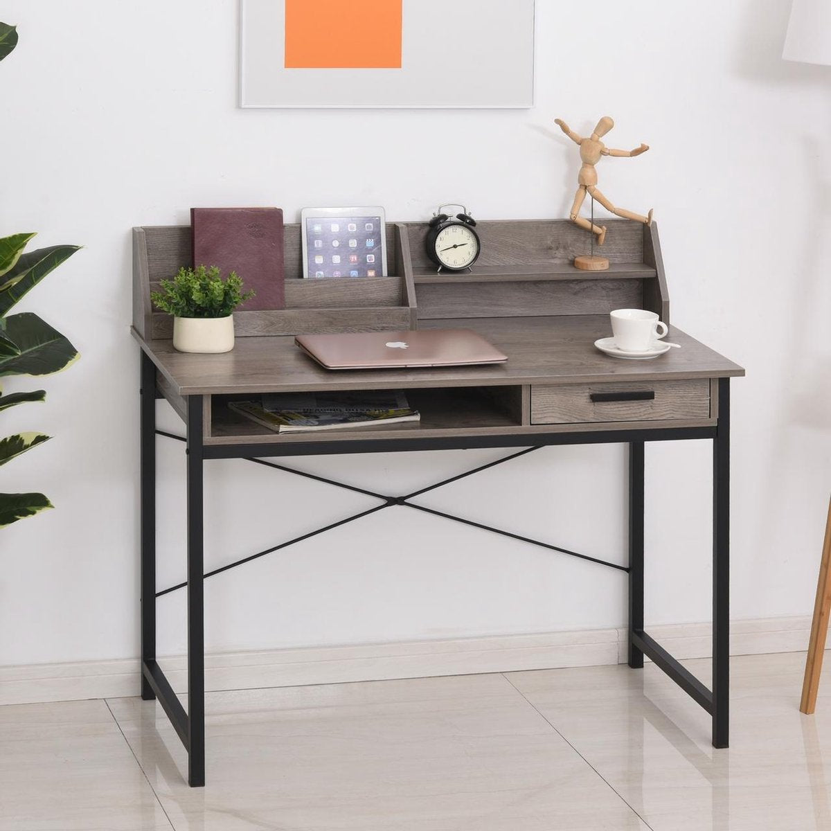 Als je op zoek bent naar een geschikt bureau voor je studie, raden we je ten zeerste dit compacte computer bureau aan. De stoere MDF-plaat en stevige stalen poten zorgen voor stevige ondersteuning. Met veel opslagruimte kun je je spullen goed organiseren en je kamer schoon en netjes houden. De industriële stijl zal nooit uit de mode raken.