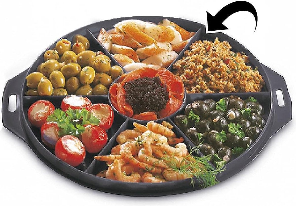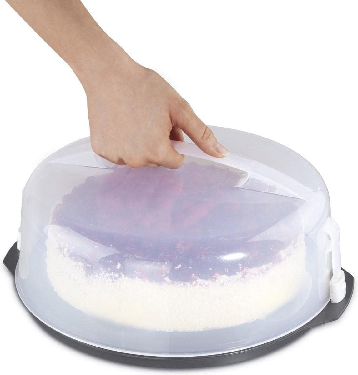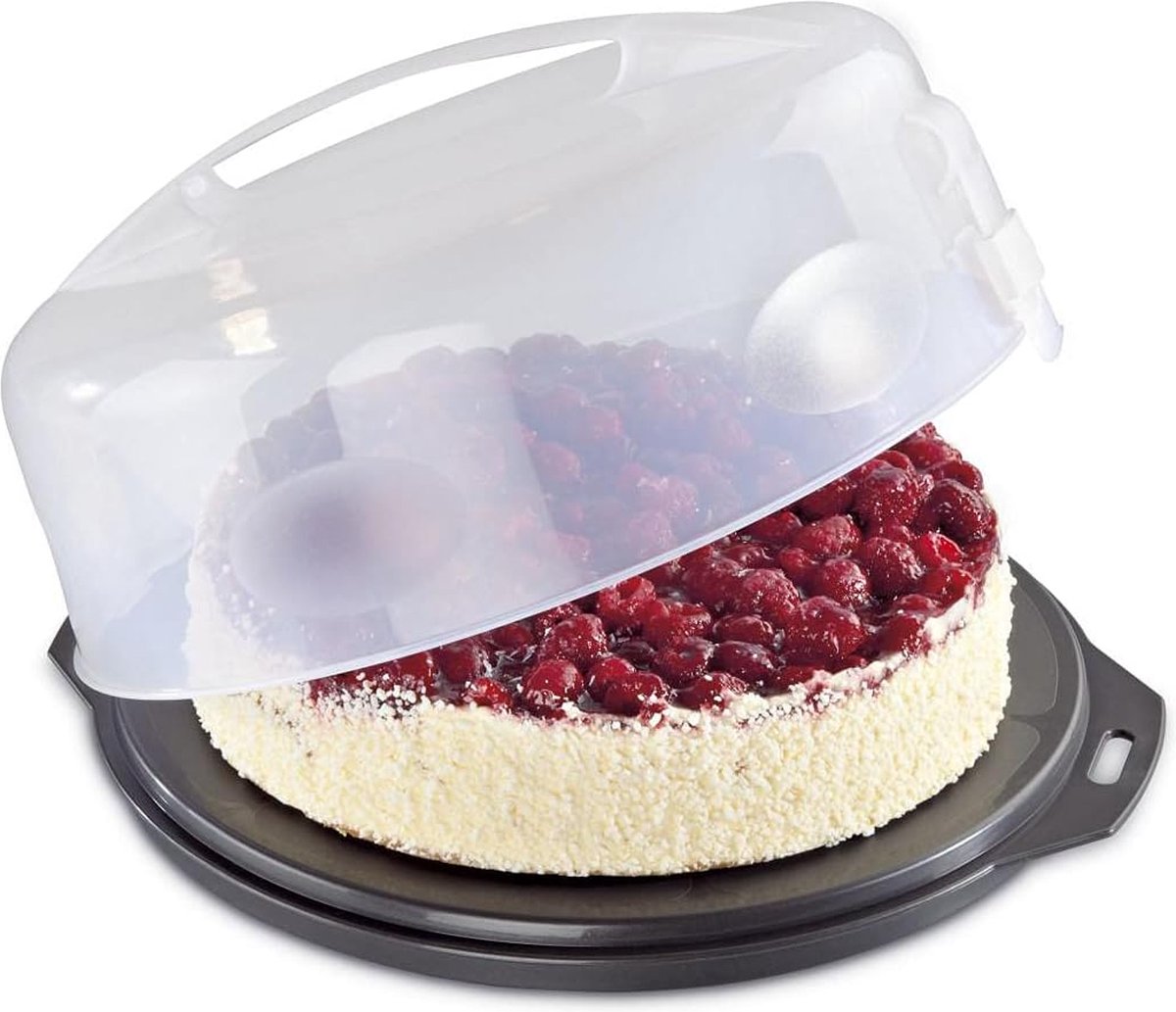 caketransportdoos rond met deksel (cakevorm Ø 28,5 cm, binnenhoogte 8 cm, cakedoos met verdeelhulp, afzuigkap en serveervakken, party en cakebutler) antraciet cakeschaal