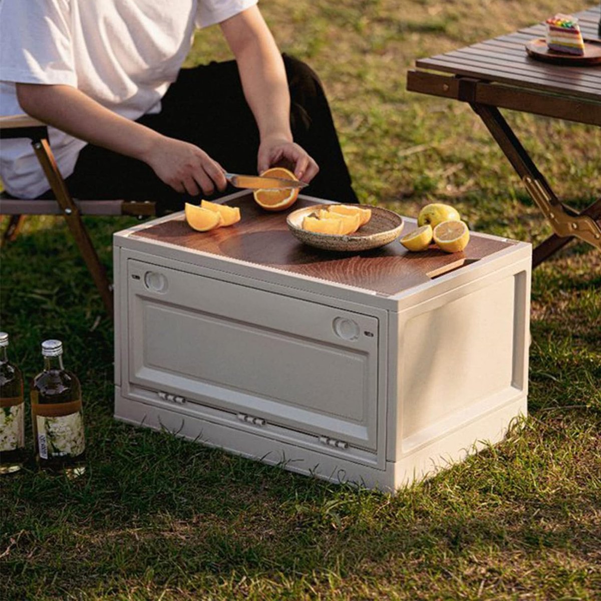 Campingbox, opbergdozen met deksel, 35 liter, opvouwbare plastic opbergkisten, opbergbox als tafelblad voor outdoor, camping, auto, kofferbak, wit