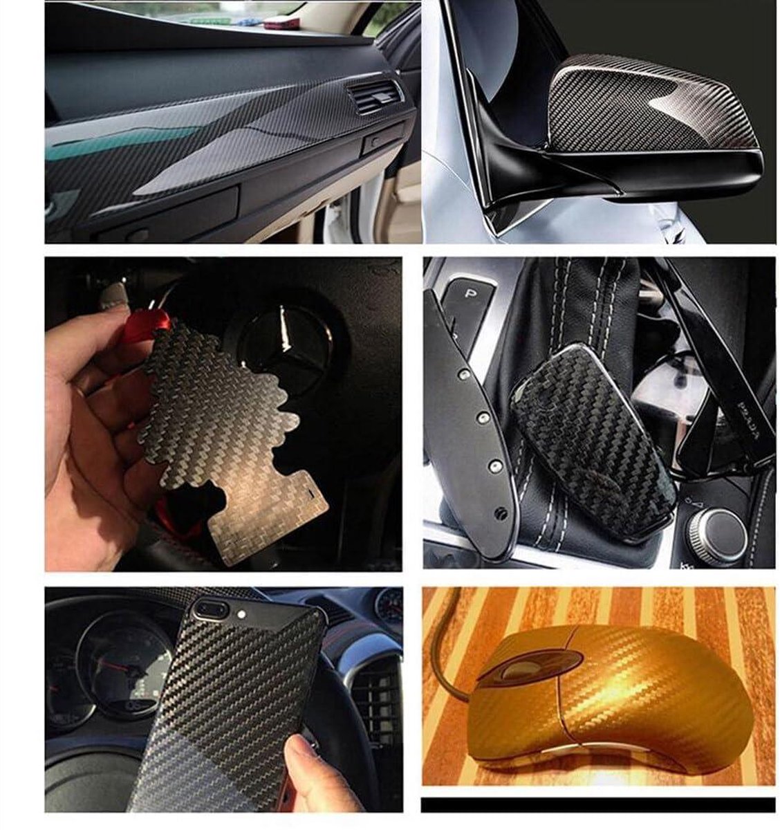 Carbon Fiber Vinyl Wrap - Waterdichte Zelfklevende Film - Auto Interieur - Voertuig & Laptop - 50x152cm